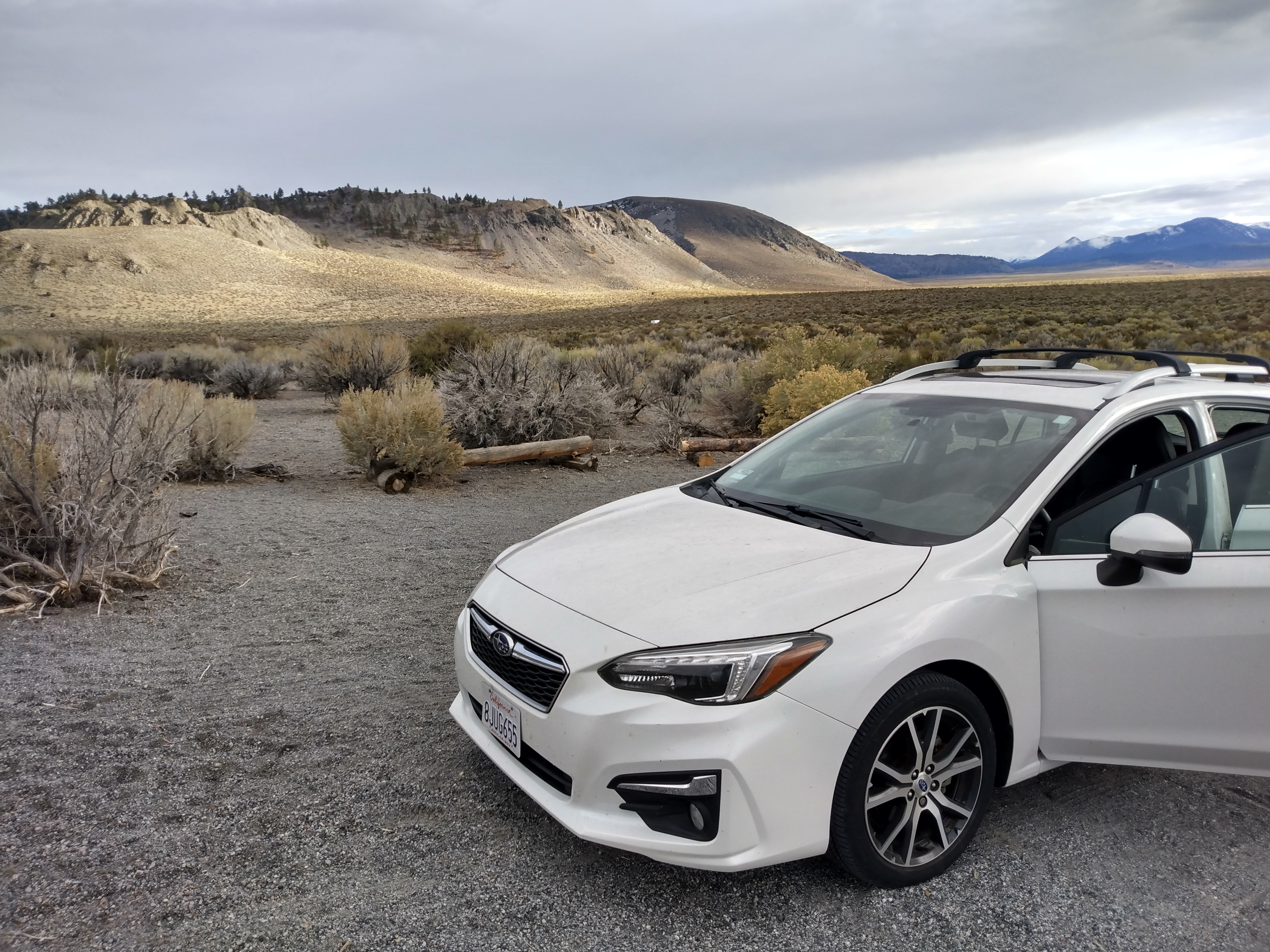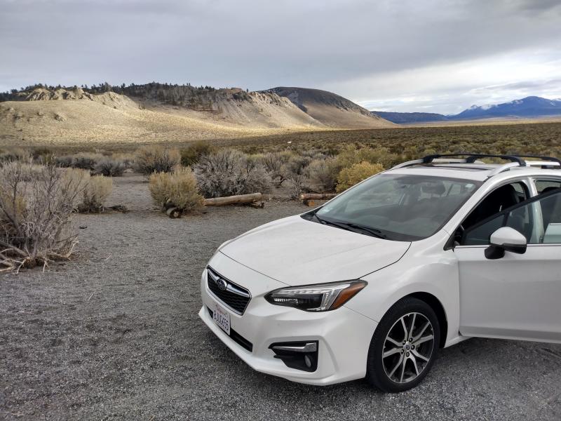 I discover a feature of the Impreza: if you have high beams on, and there's oncoming traffic or a car in front of you, it automatically turns off the high beams. I guess this is a good feature, but at one point there's an A-hole pickup behind me with blinding high beams. I pull over and let him pass, with the intention of then blinding him. But the car won't let me do this.