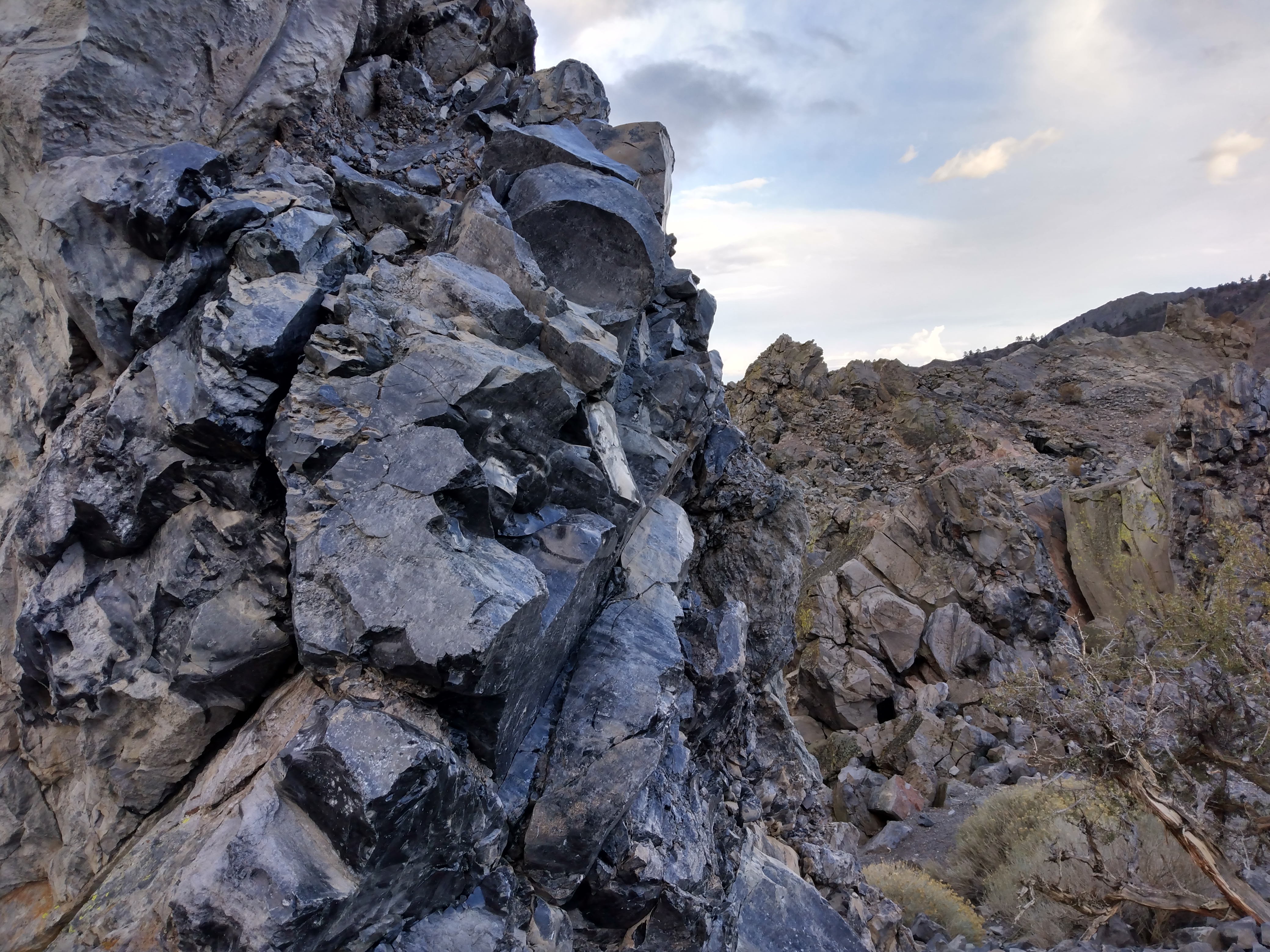 We reach the black rock, take a break, and head uphill. The slope is free of snow, and I move pretty well.