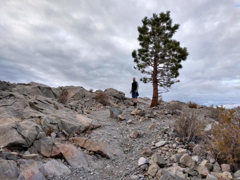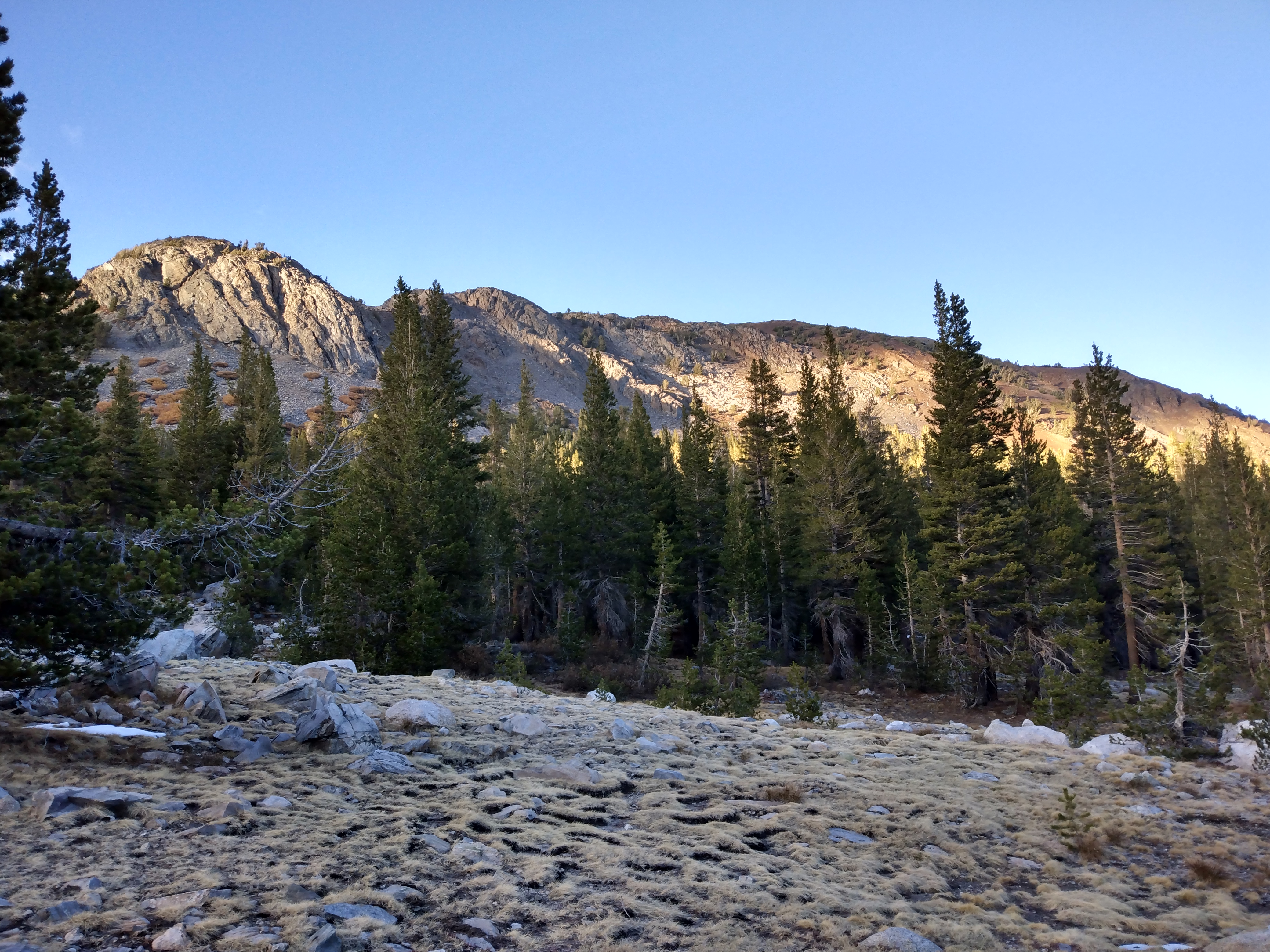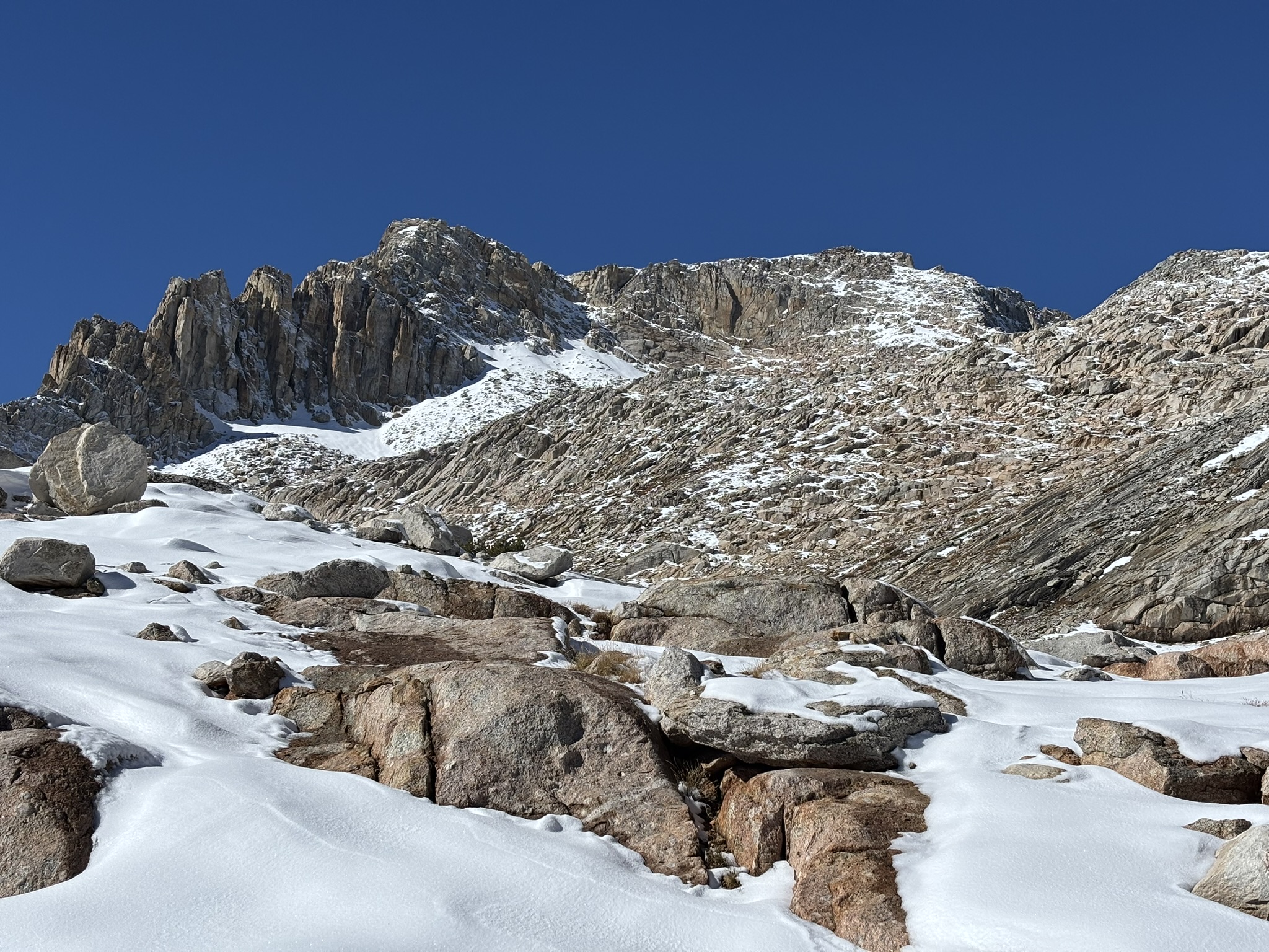 The first couple hundred yards are good, and there are patches of dirt suggesting that other people have come this way. But it transitions into difficult boulder-hopping, and we never find a trail. I think maybe we went too high.