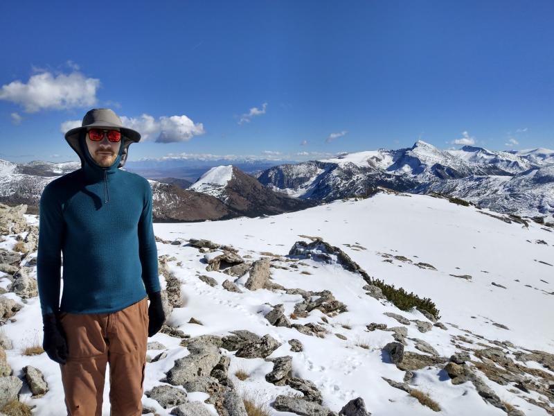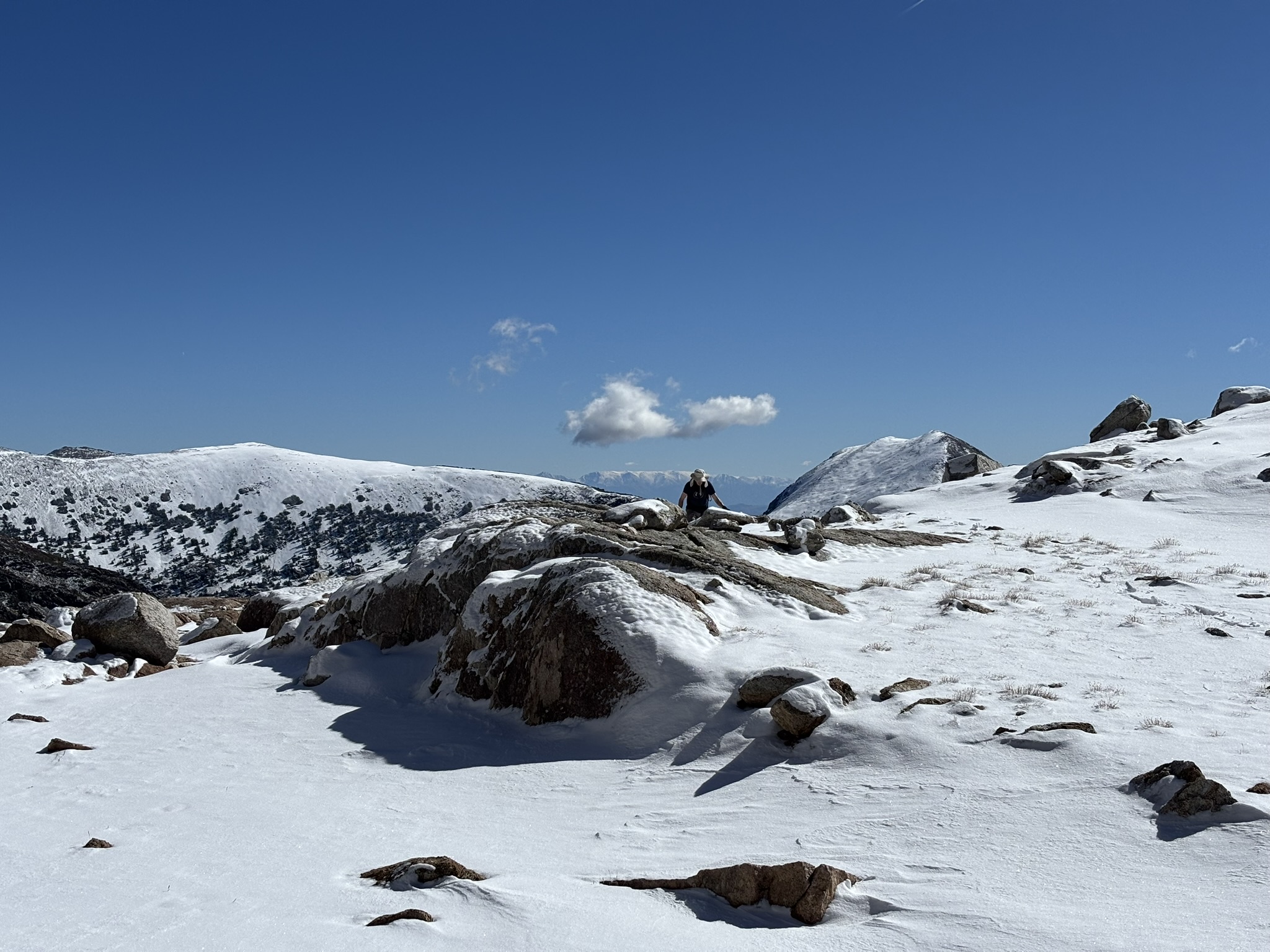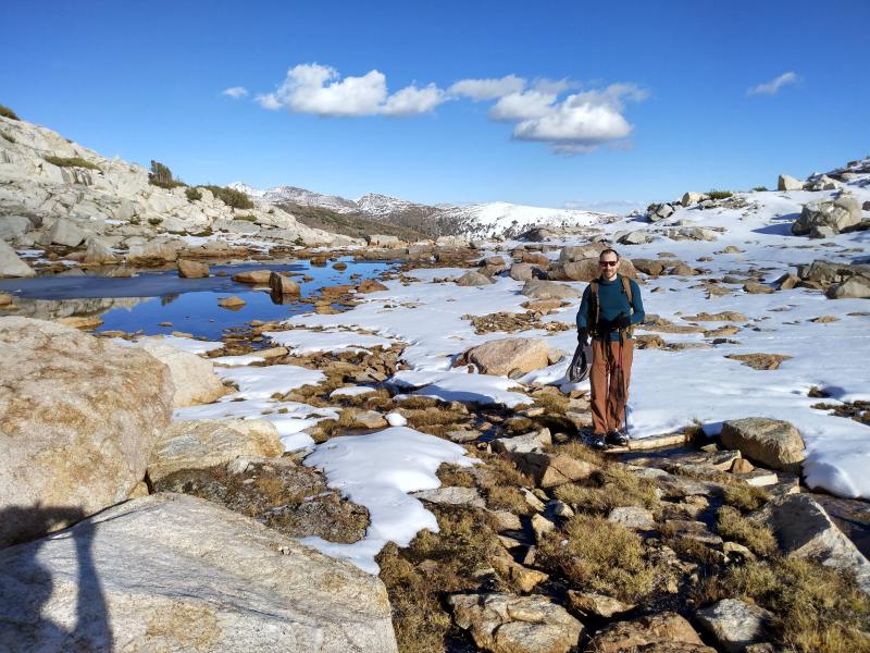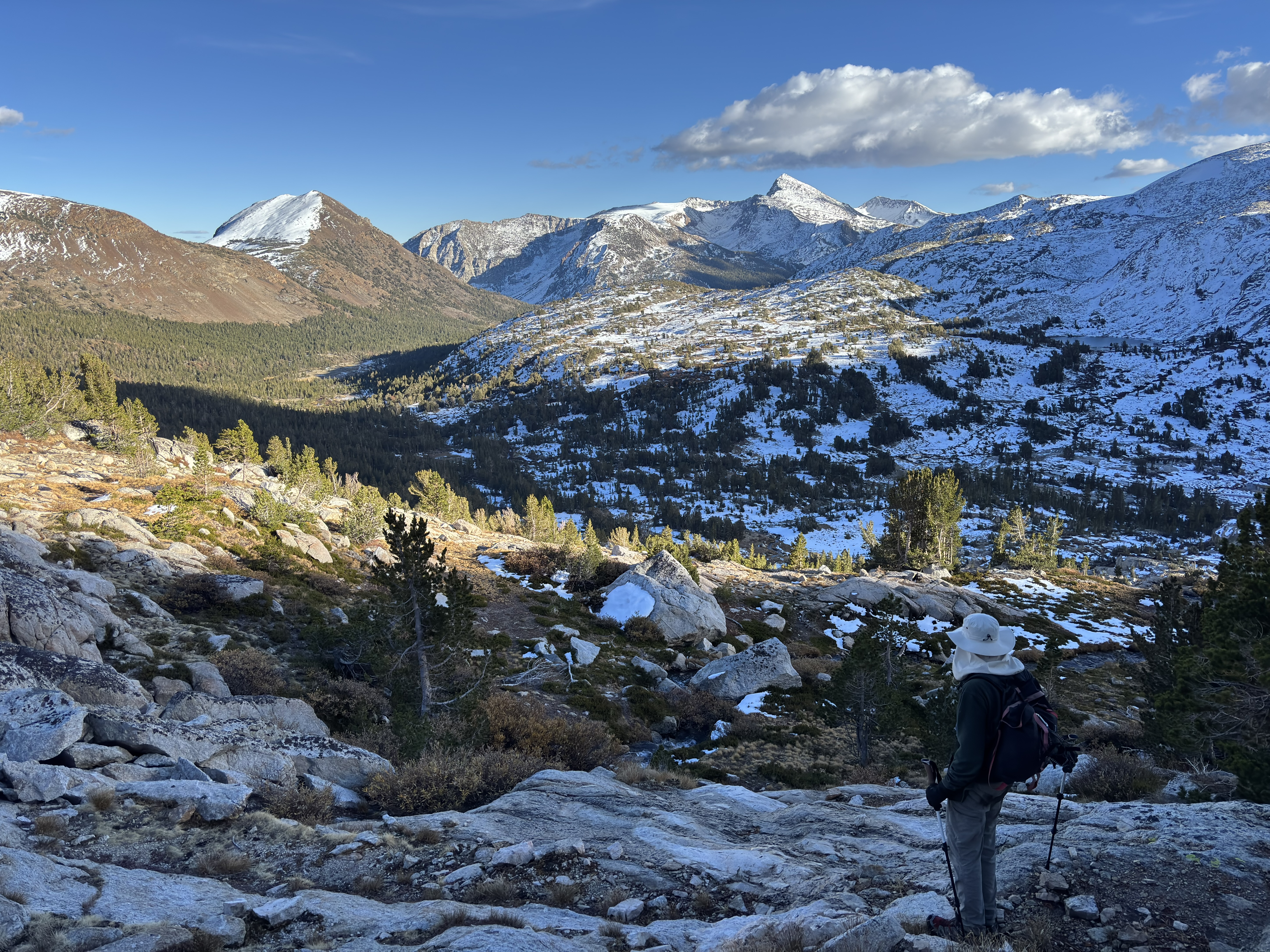 At the pass, we stop and do the hike towards Sonora Peak, which Noah and I did a few years ago. There's patchy snow.