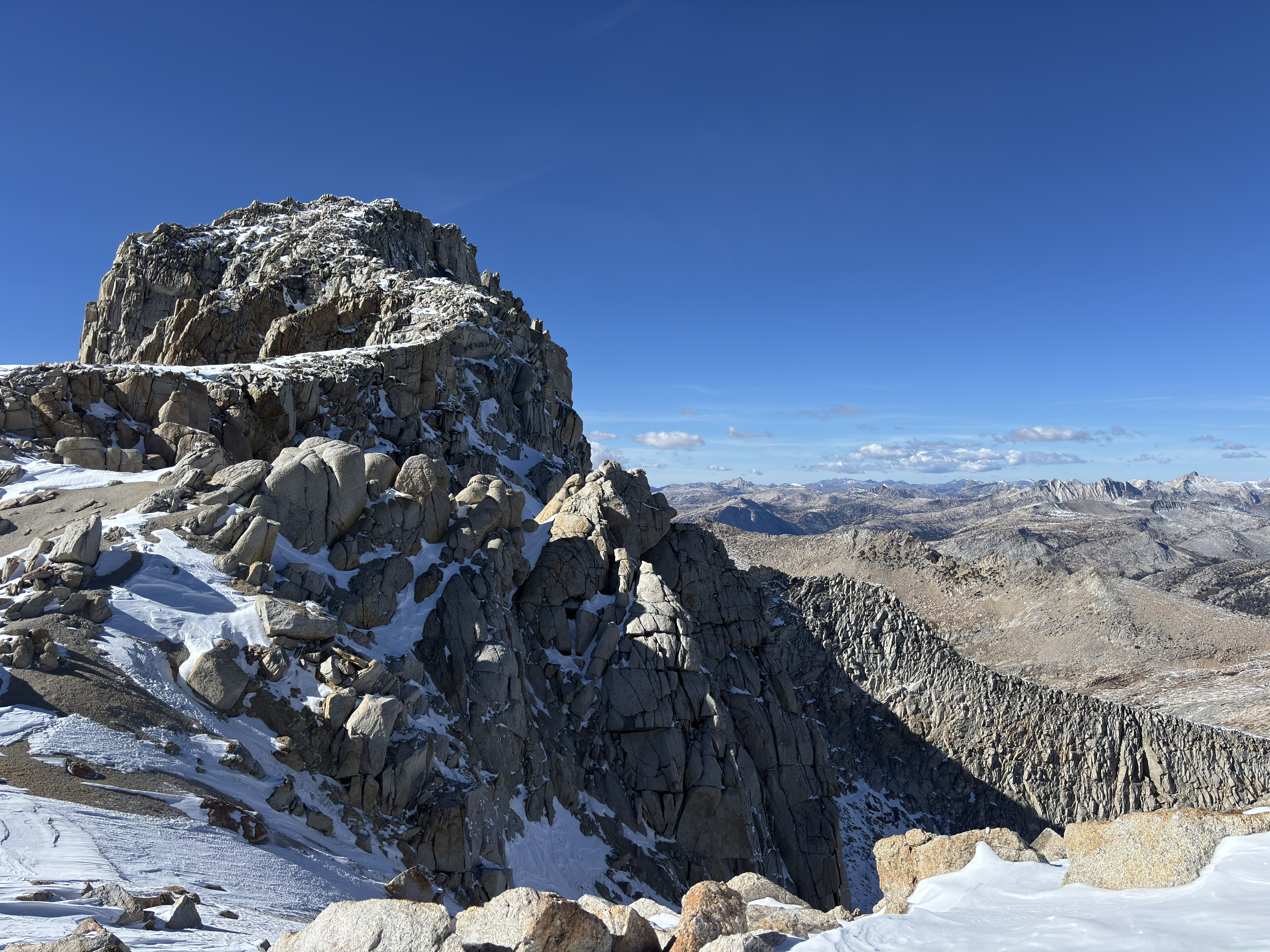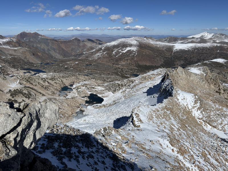 Behind us, there's a great view of Mt. Dana - which Tyler climbed solo a month ago - and the Dana plateau, which is completely snow-covered.