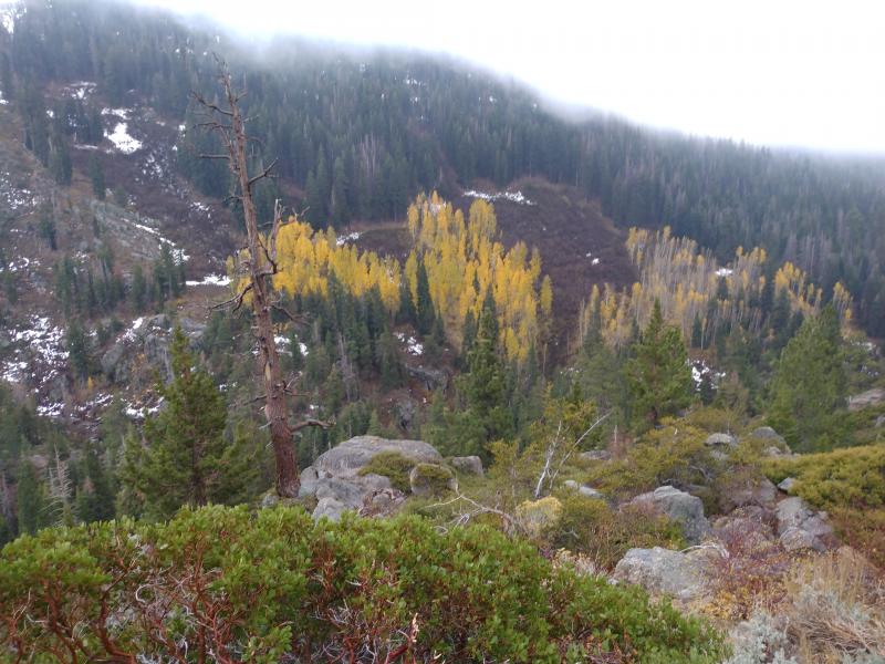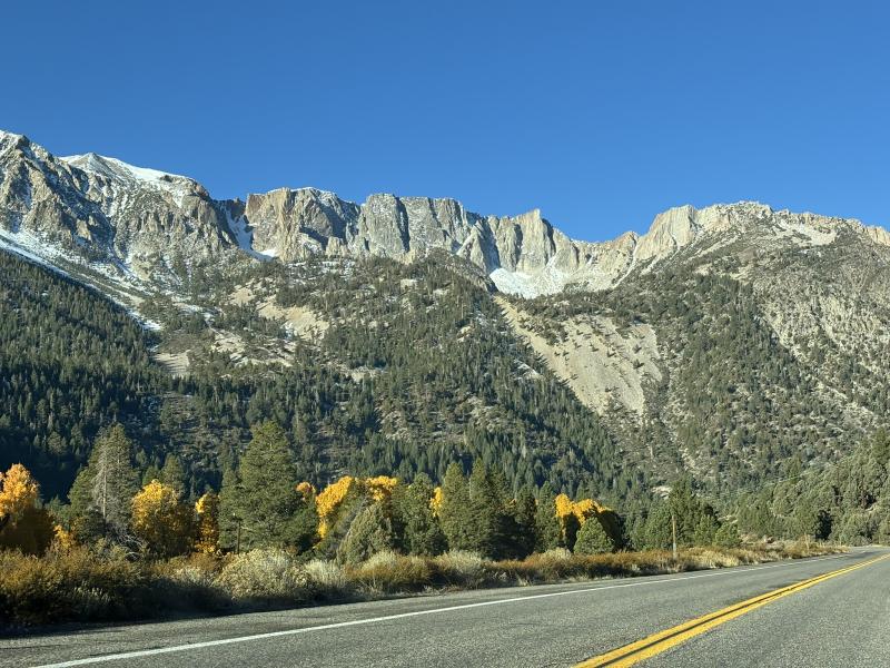 We go up 108 through Sonora. As we gain elevation, there are stands of aspens at the peak of their brilliant yellow fall colors.