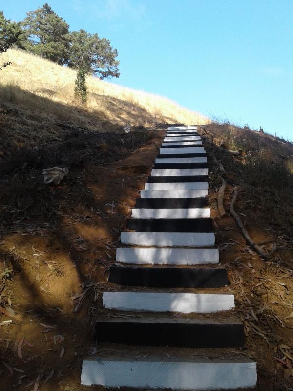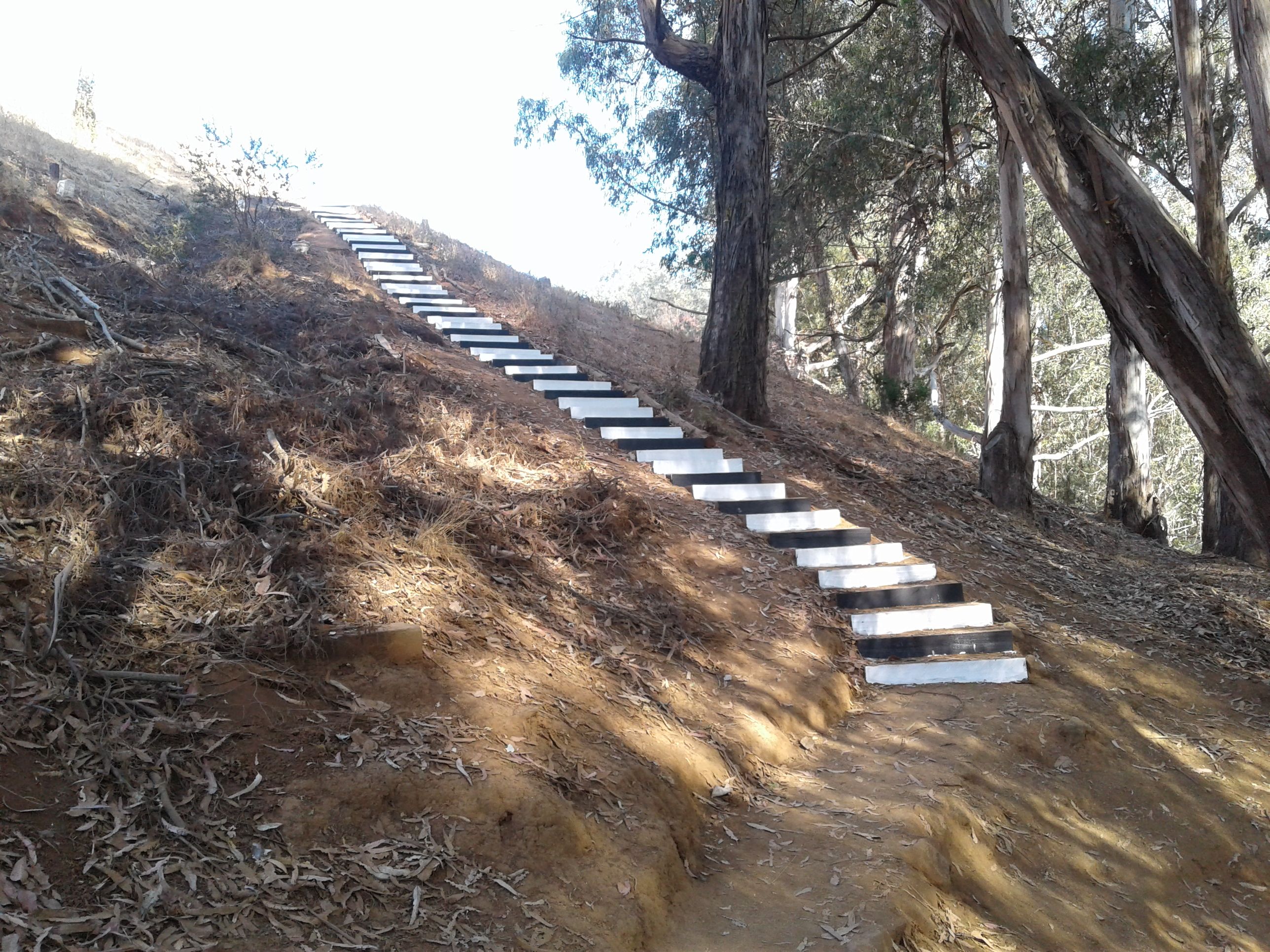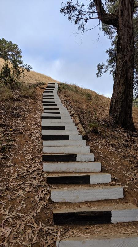 A couple of years ago someone painted the longest stretch of steps to resemble a piano keyboard. This person - with tremendous artistic vision and clarity of purpose - evidently was protesting the arrogance and idiocy of the out-of-control step builders.
