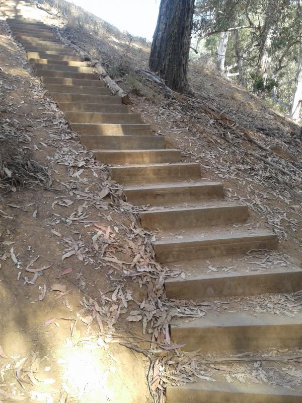 A few years ago a group of zealots decided that the trail needed to be more accessible. They started putting in lots of wooden steps. They turned the steep parts of the trail into staircases. They kept going, putting in more and more steps, even in shallow parts of the trail. The spacing of the steps was awkward, and their sharp edges were unpleasant to walk on. The steps nearly ruined what was once a wonderful trail.
