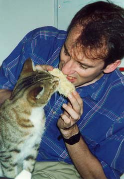 My late cat Joe and I sharing an ear of corn, ca. 1994.