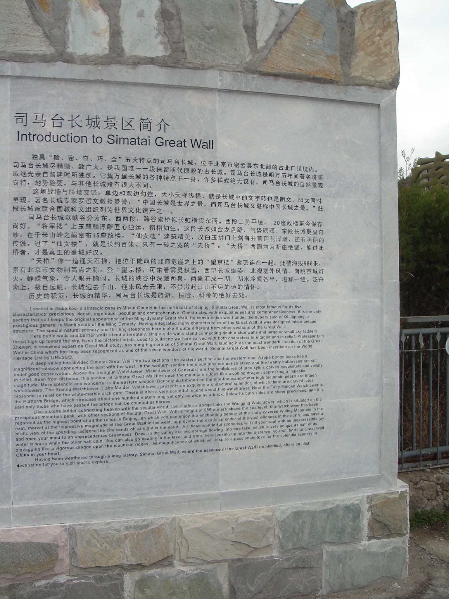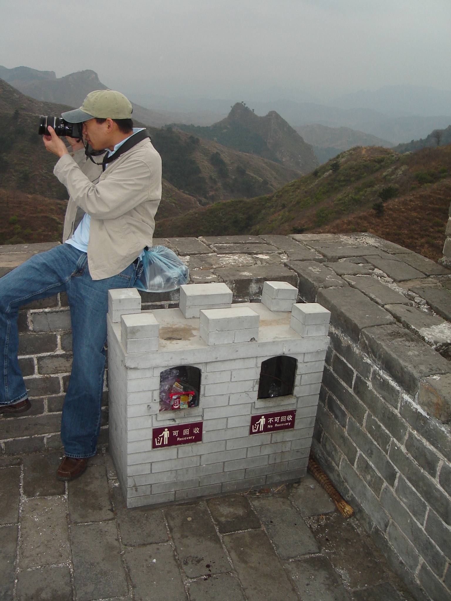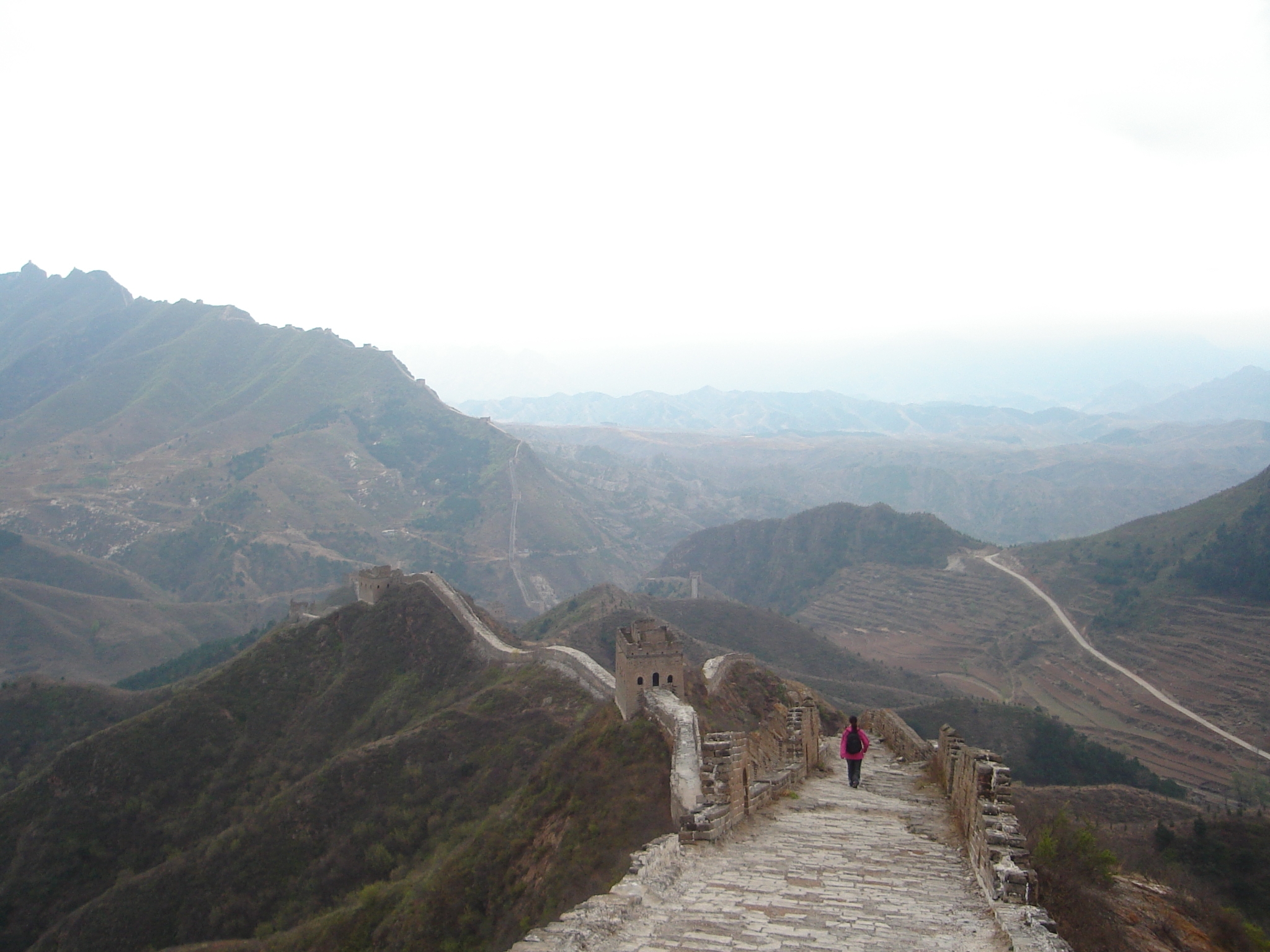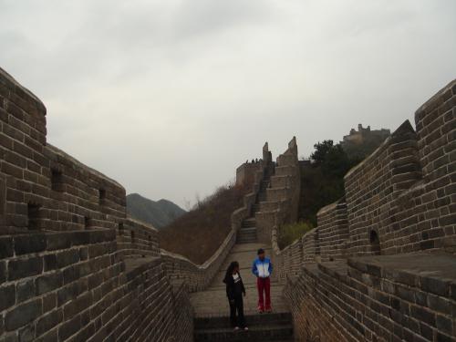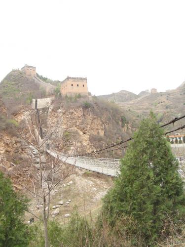 The hike goes up and down some alarmingly steep and crumbly stairs, and is moderately strenuous. There are ticket booths every so often. We cross a river via a long footbridge. There's a zip line for Y45, which Nicolas takes. At the end the van meets us and we return to Beijing.