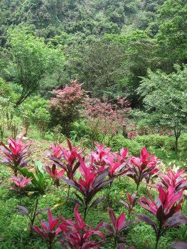 I meet Nicolas, Francois, and Ben in the cafe. We set up in the conference room and meet Kiwi and Felix Lee, sharp computer guys. Later, Francois and I explore the hills a little. One path dead-ends at a house with inhospitable occupants. Another, under construction, ends at a pagoda. We try to continue but the jungle is dense and full of spider webs.