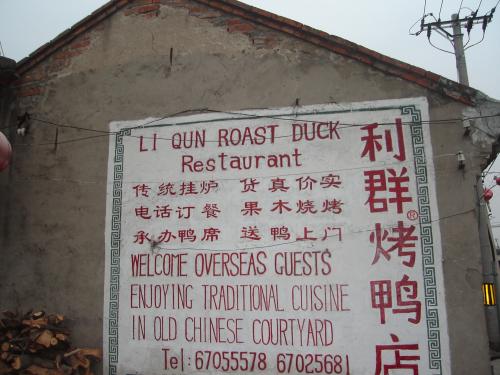 We finally hook up with Francois/Sara/kids and go in tricycle-taxis to the restaurant, a hole-in-the-wall on the aptly-named Roast Duck Road. Francois has ordered 3 ducks and there's an extravagant amount of food.