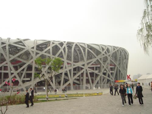 We visit the Olympic plaza, bird's nest stadium etc. We see the 'Flame building': a 7-star hotel (what exactly do you get?) with an immense TV on the side.