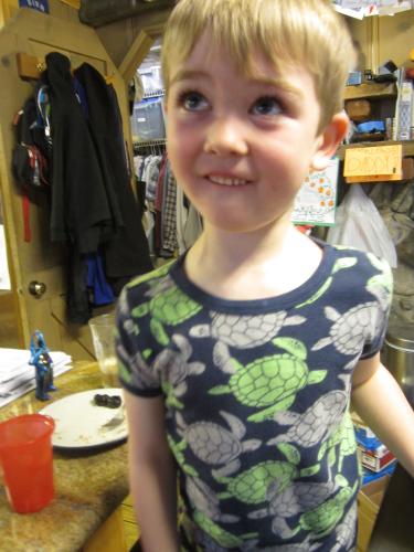 Robbie and I say goodbye to Cory and Diego (slightly sadly, in my case) and drive back to Robbie's house, where Maureen and Belinda are playing dueling violins. Gabriel is feeling grumpy and neglected. I teach him to thumb wrestle, and he lights up. He's a great kid; BTW, he's hiked to the ski hut (5 mile round trip) 17 times and he just turned 6.