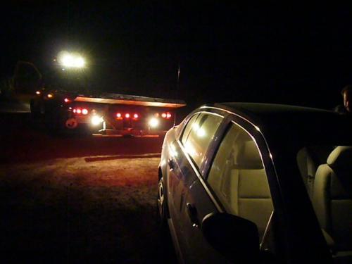 We reach the parking lot. I change into my jeans, locking my shorts (which have the car keys) in the trunk. Panic sets in. Fortuntately Dave has cell-phone signal and we manage to get a tow truck from North Bend to come out. The driver (another Dave) complains good-naturedly about the dust from the dirt road getting all over his truck (a giant diesel rig, overkill for this application) which he washed the day before.