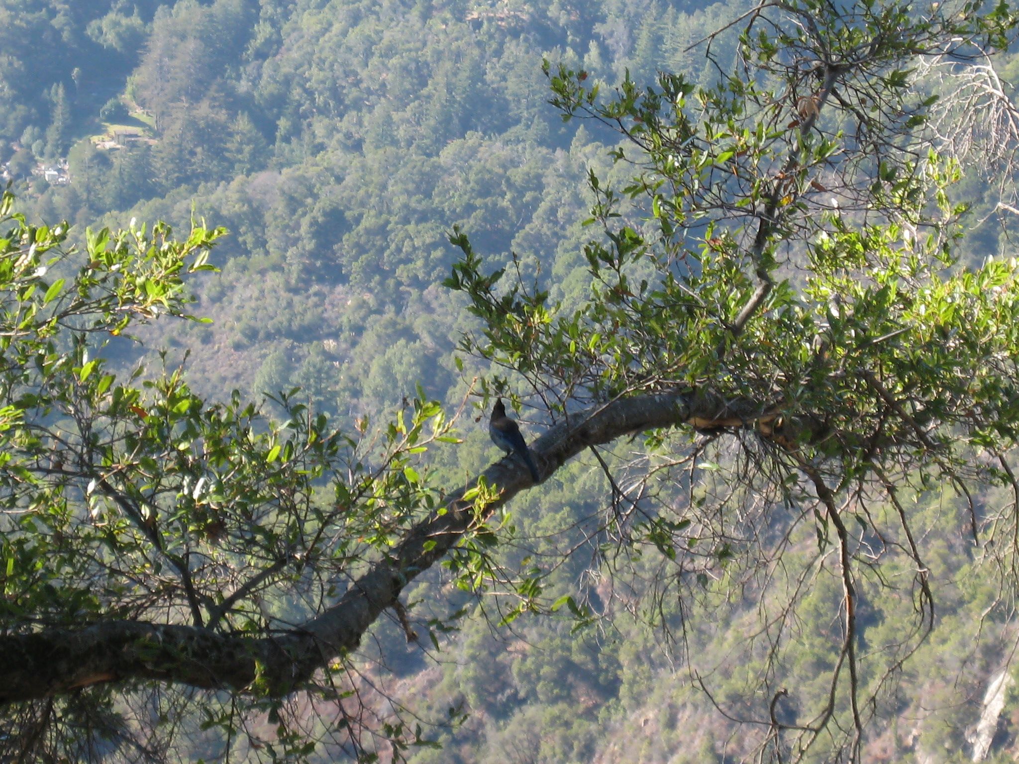 We turn around and descend, stopping for a while near some tall madrone trees with lots of woodpeckers and other birds.