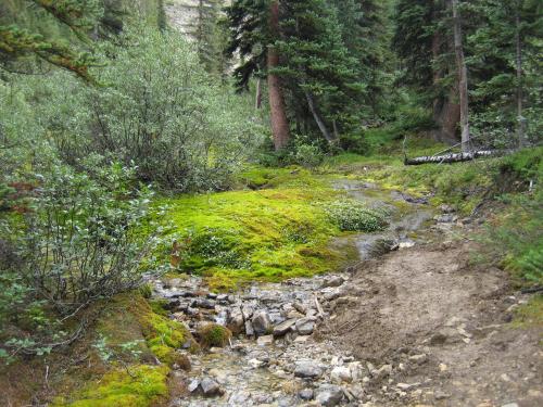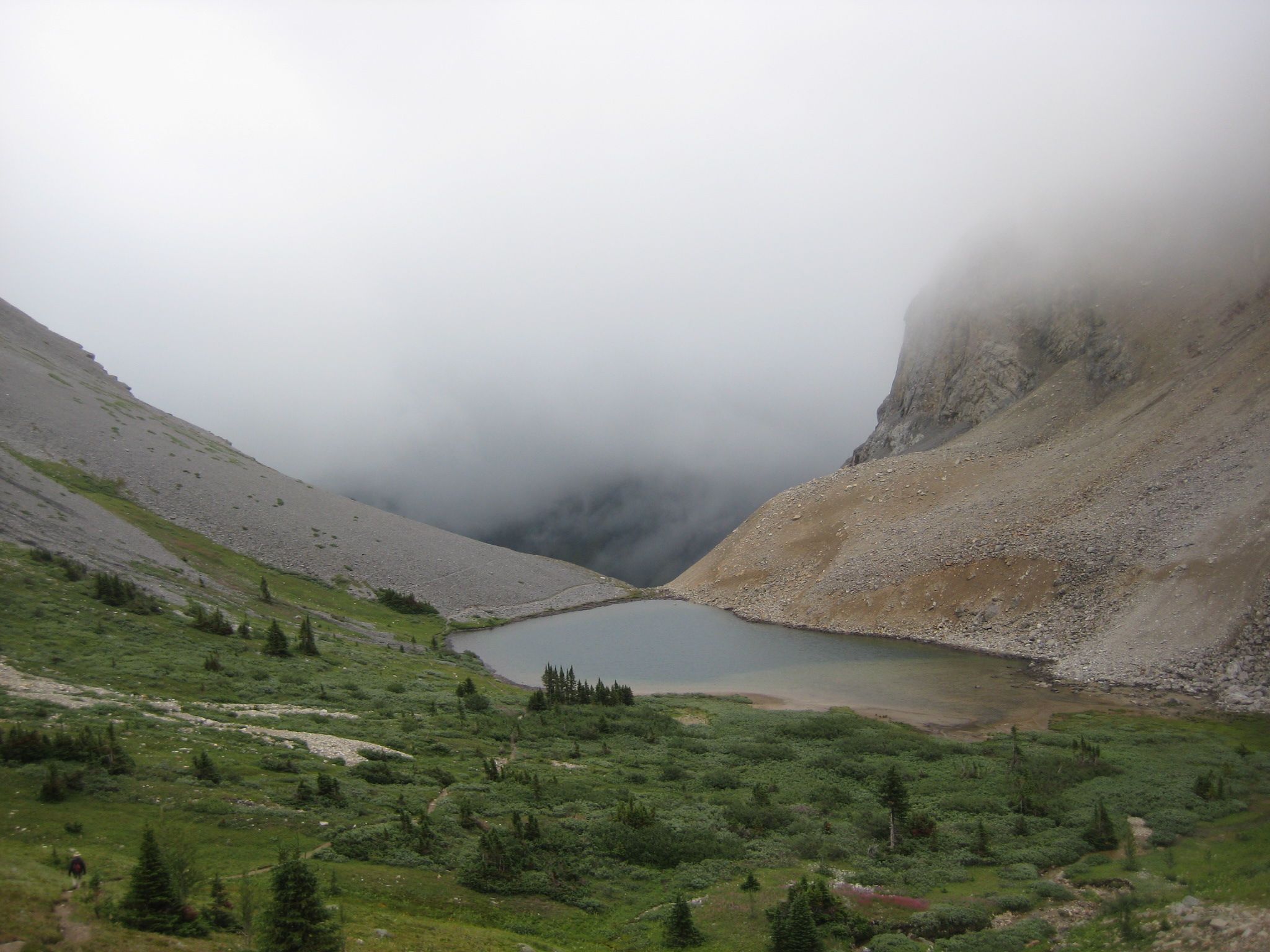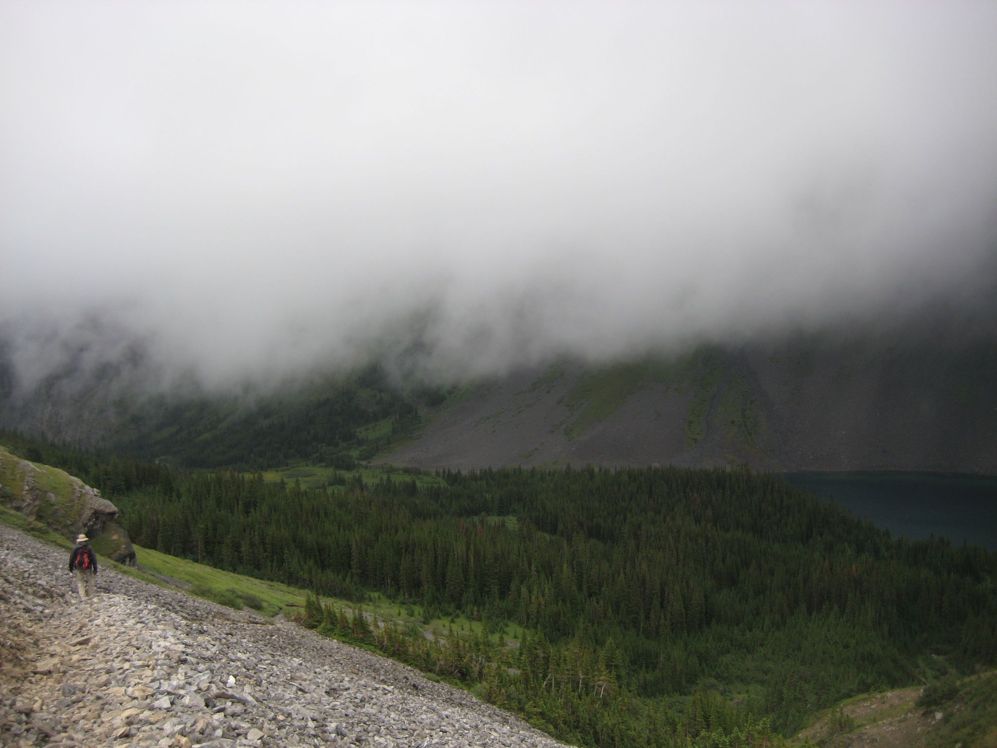 After a brief stop in Banff (like Canmore but a bit bigger and more touristy) we drive to the Mt. Bourgeau trail head for our first hike. The trail climbs gradually through forest for several miles, leading to a small lake in a cirque.