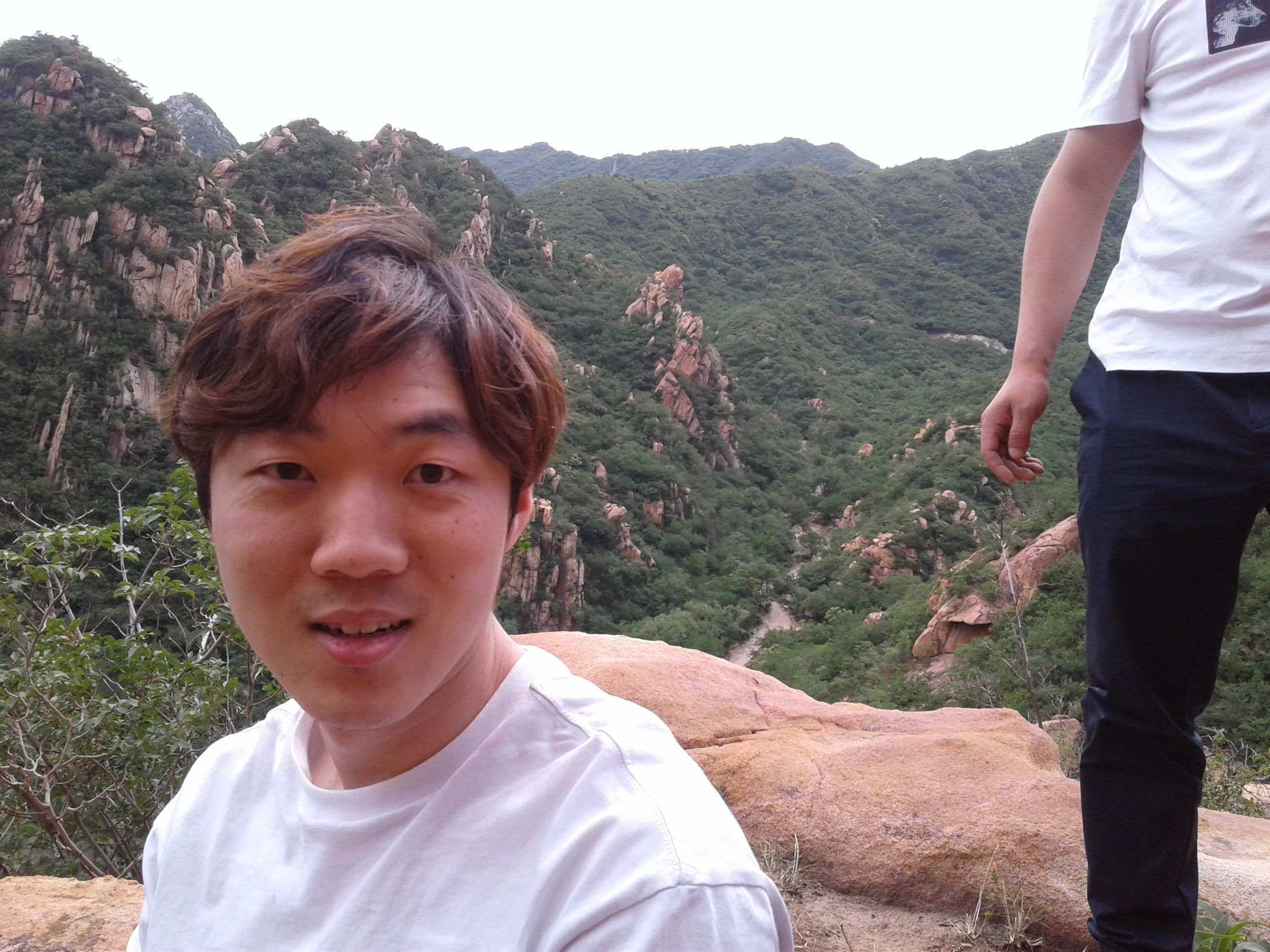 The five of us (me, the boys, Ja, Wei Wei) shoulder climbing gear and head up the ravine, turning off onto a sketchy approach trail. A mountain spring comes out in a faucet; I have a drink and douse my sweaty head with water.