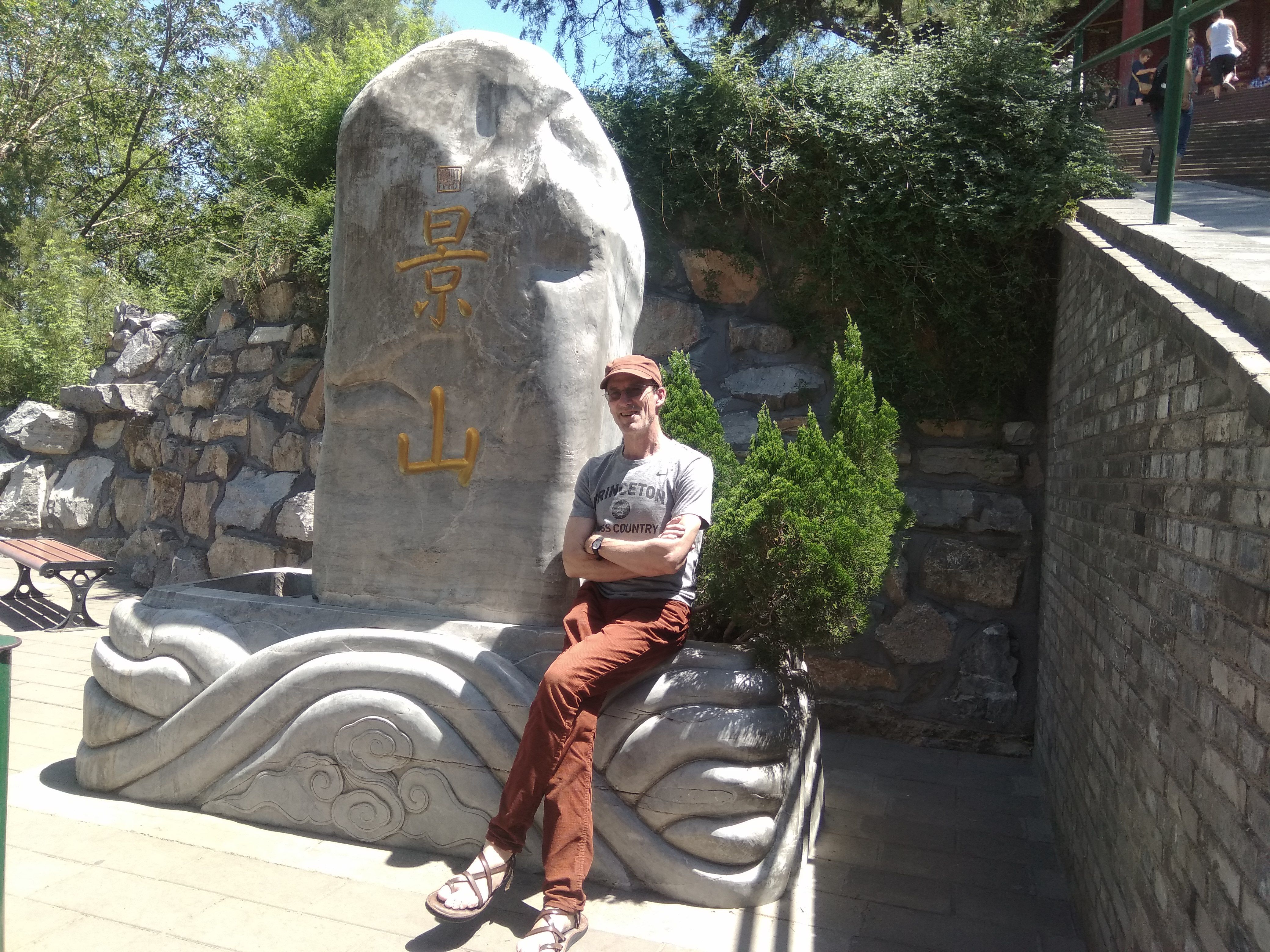 Jenny says we should skip the Forbidden City, and instead take the bus to a park on a hill that overlooks it. I agree - I enjoy her company, scam or not. There a tree where an emperor ostensibly hanged himself. Deja vu - I've been here before, though I can't remember when. We walk up the hill; she's startled by the fact that it's no exertion for me.