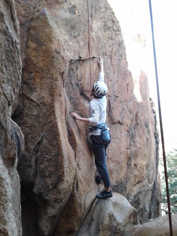 Nearby there's a 5.11B that looks doable - it's pretty vertical, but with some little ledges. Ja and I agree that we should try it.