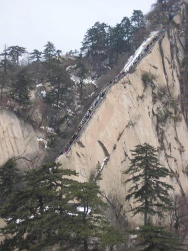 Hidden speakers play an inspirating 'Mt. Hua Theme Song' in a loop. It goes up 'sailfish fin', a narrow rib of rock.