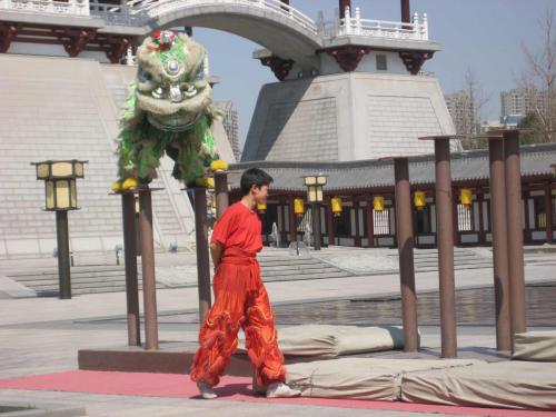 We walk along the wall again. This time we stop at the pool hall and play a couple of games. An extremely cute boy (7 or 8) watches us play practices his limited English with me, and engages me in a kung-fu fight.