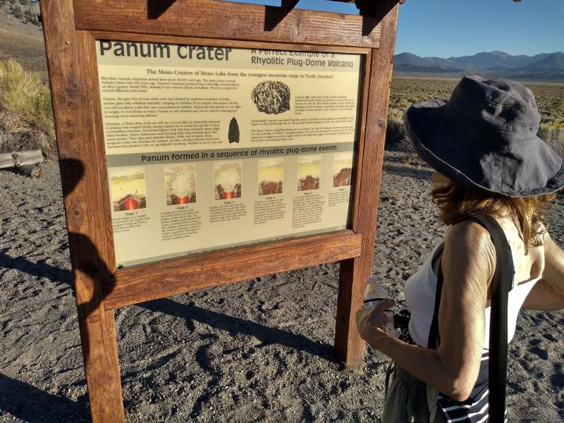 We drive to the South Tufa at Mono Lake and do the loop there. The flies put on their usual show. We're surprised to read that 80% of CA's seagulls visit Mono Lake each year.