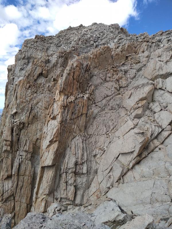 At this point we're at the base of the somewhat daunting cliffs. M is tired, and decides to wait there while S and I summit. I estimate 3 hours, but it turns out to be 4.