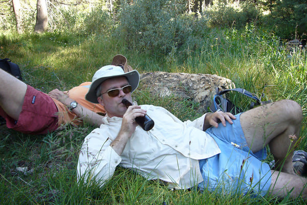 The descent takes a while. Dave reports sore toes. We linger by the stream for a few minutes and enjoy the cool beers.