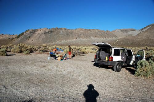 Justin and I pick up Dave at the Oakland Airport at 10 AM. We fit our collected camping gear into Justin's Jeep Cherokee with little room to spare. More photos here and here.