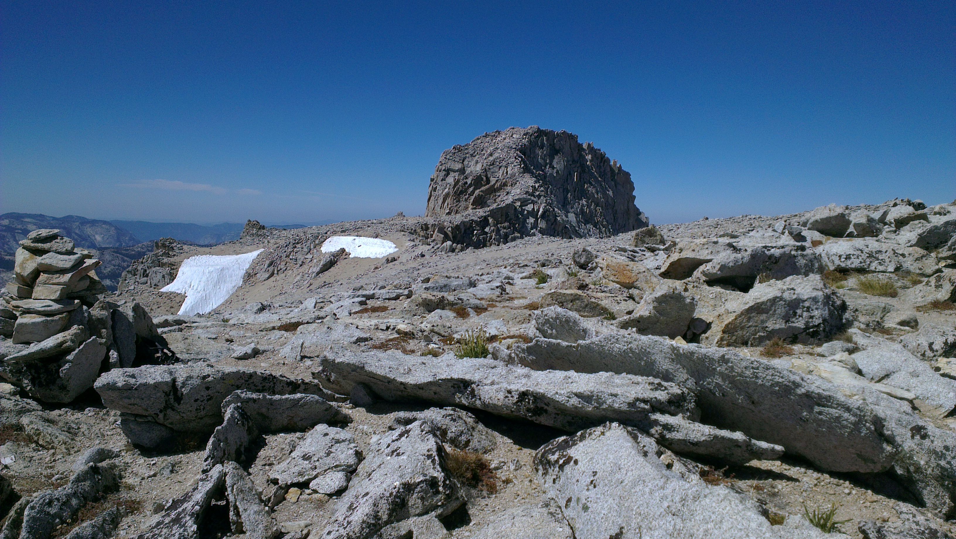 It's fairly calm and nice at the summit, but I only stay for a minute or so. I'm feeling very good, but I know the descent is long.