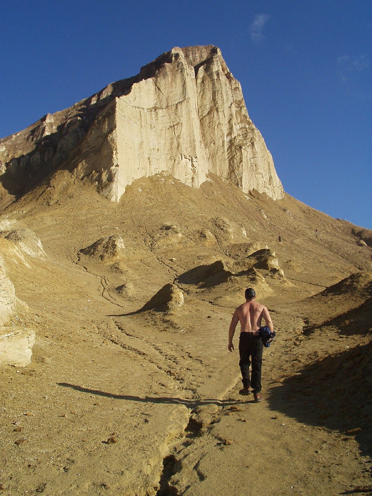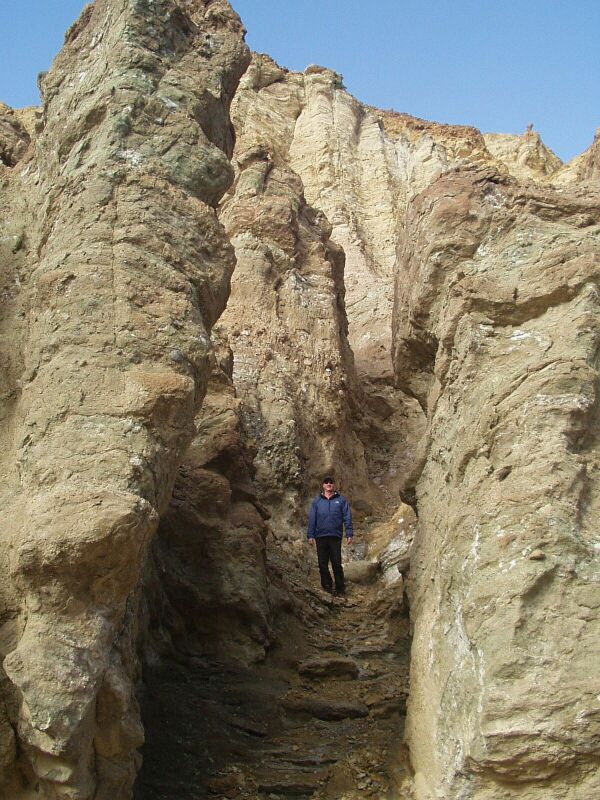 On the way down we meet the camera lady again. I urge her to step down from the dirt ridge she's on, which collapses and she falls to the ground, but is OK.