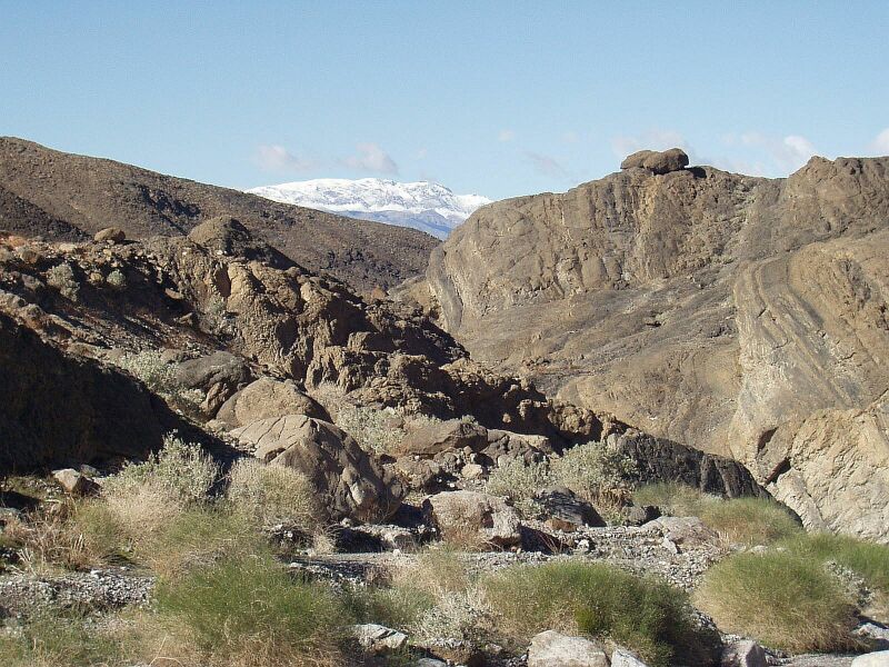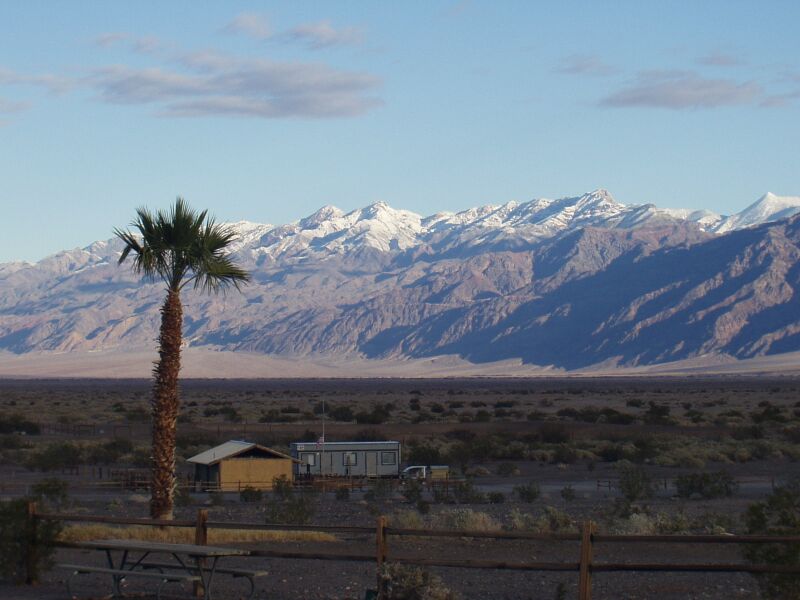 We continue North on 178; after 10 miles we pass a sign saying 190 is closed, i.e. you can't get to Death Valley this way. So we backtrack, and go the longer route through Shoshone.