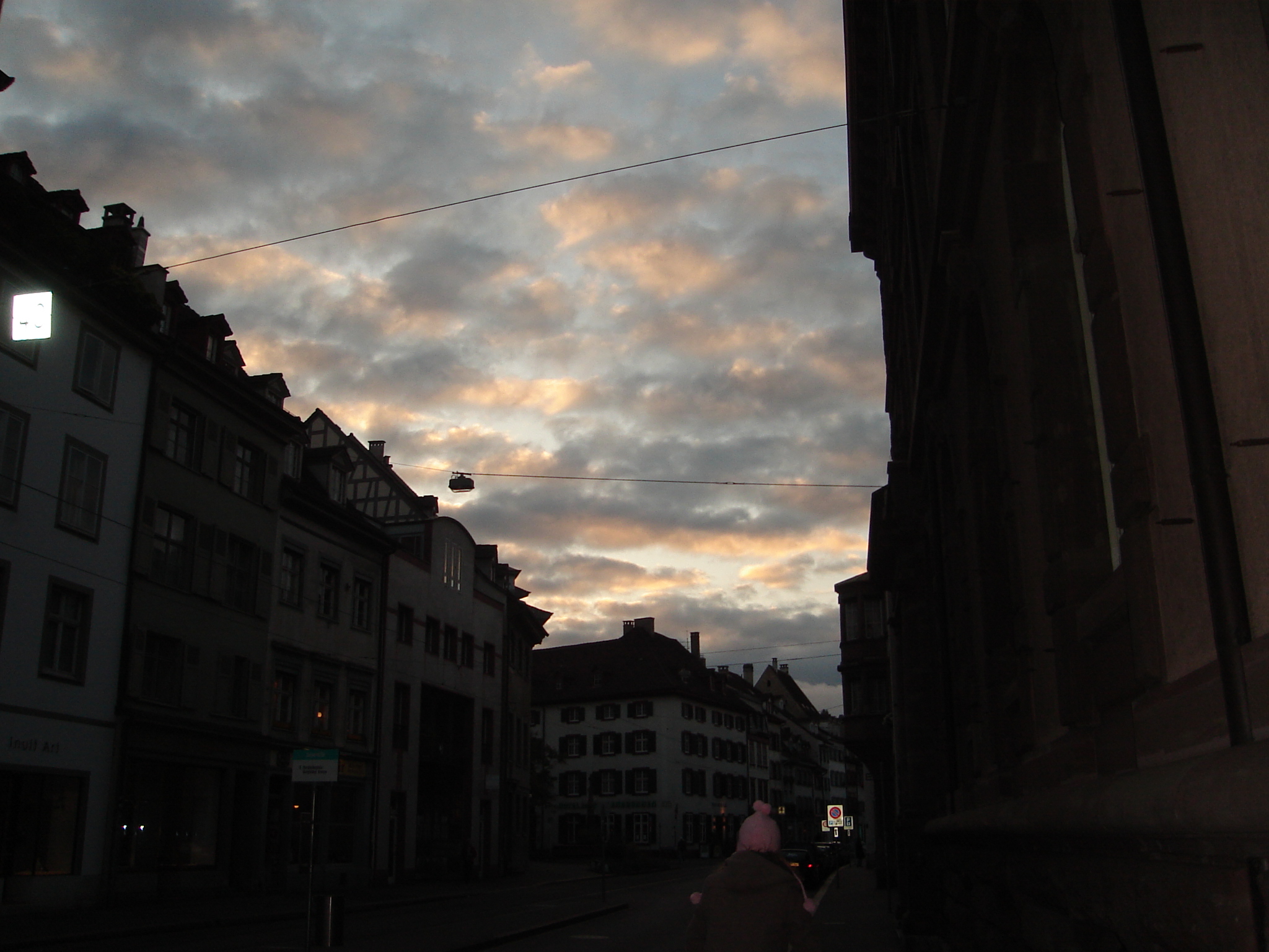 Depart SFO 1:30 PM; JFK, then LHR. A quarter tab of Xanax takes the edge off my Air Travel Rage nicely, but I am unable to solve the easiest Sudoku. No sleep on the overnight leg, but I rest and feel OK. The final leg is Heathrow - Basel, where I arrive around 5 PM. From the plane, I see many beautiful white cliffs. Nicolas picks me up and takes me to my hotel, which has some academic connection. I wander through the old town and across the Rhine, looking for a restaurant that takes credit cards. I find one, and have a beer and mediocre spaghetti for $20 (welcome to Europe!).