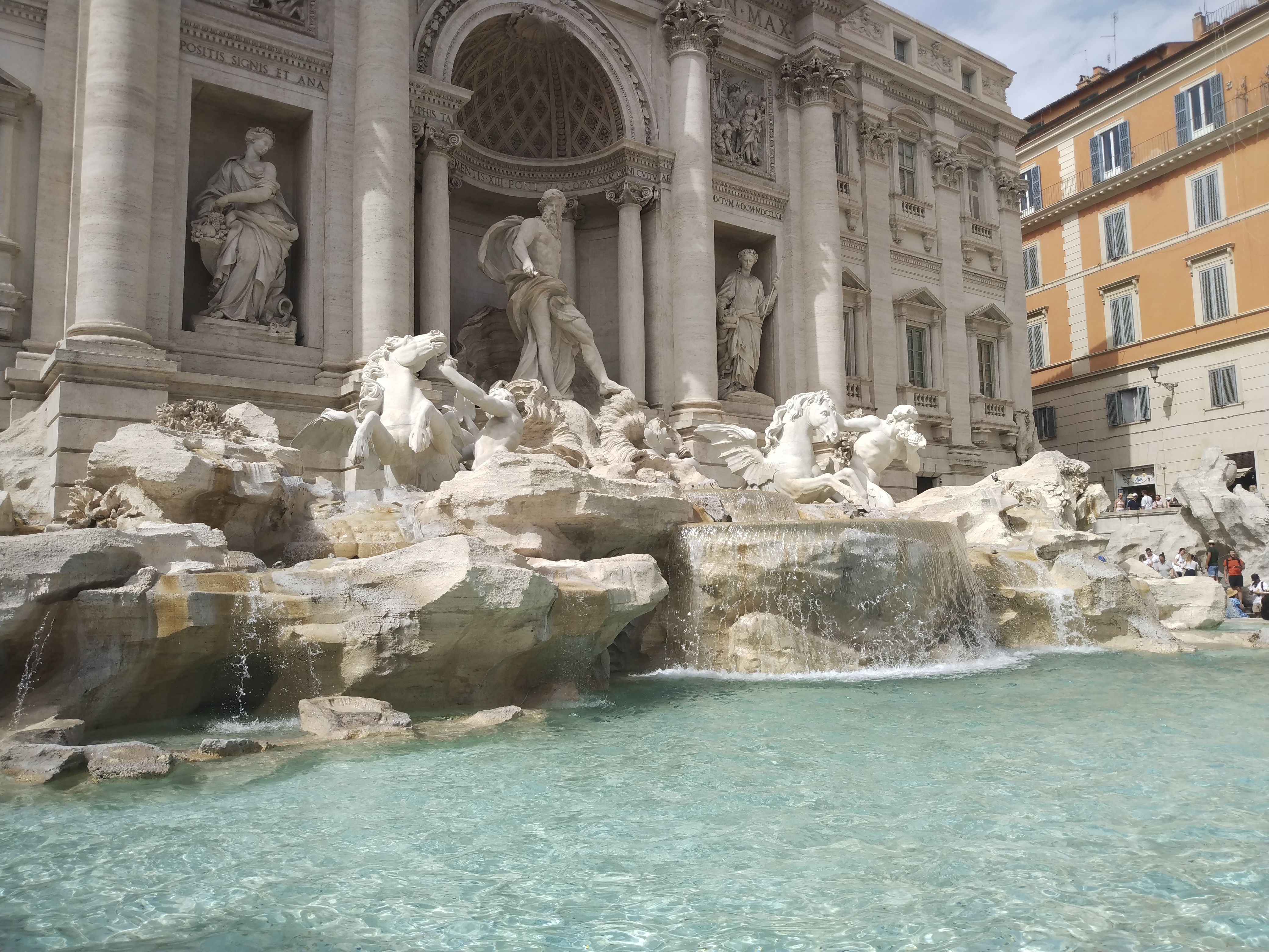 At Trevi fountain, Bita tells us the approved method of throwing coins, which I put into practice.