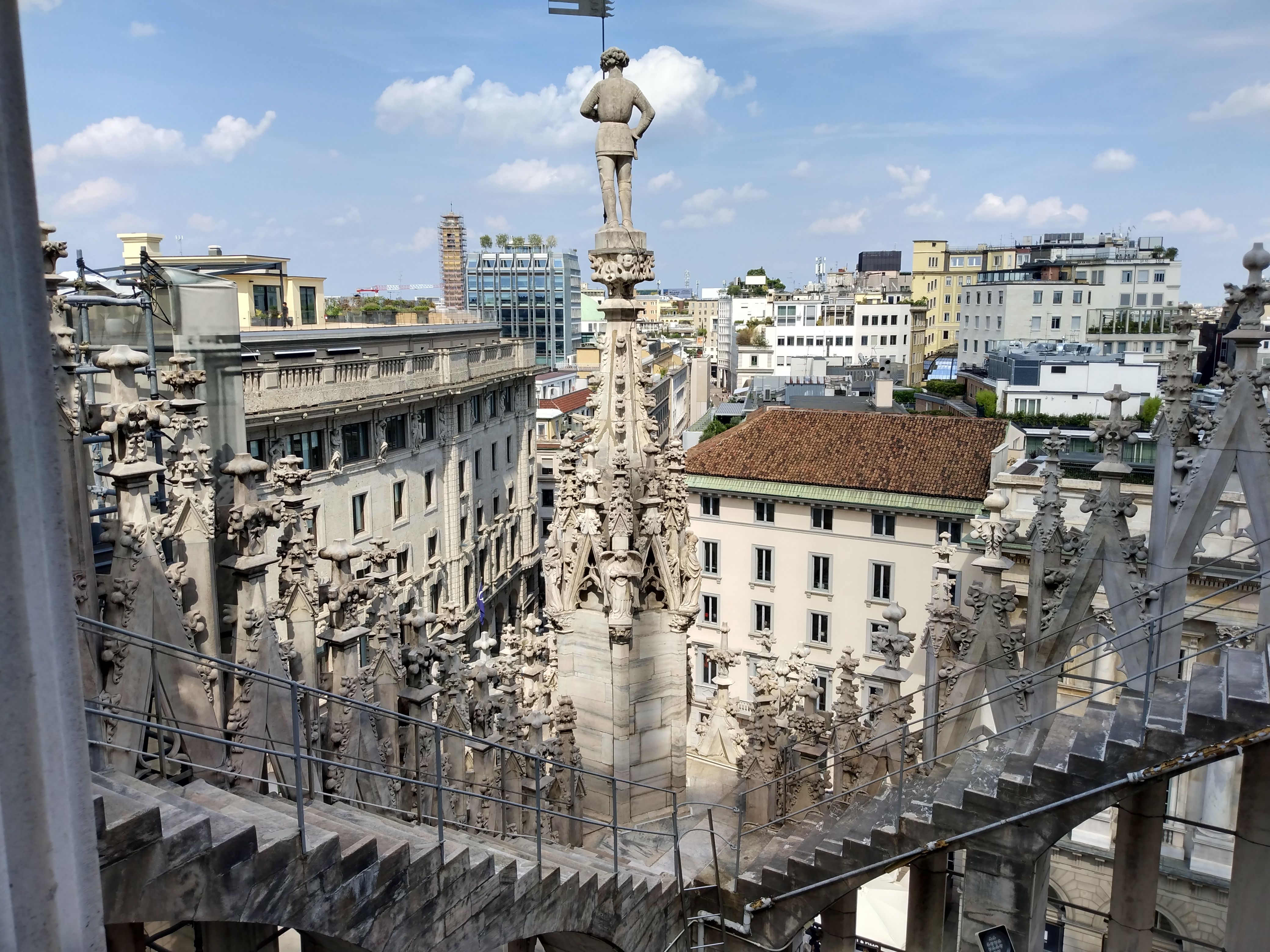 A recent storm uprooted lots of trees in Milan, and the major parks (which the tour normally goes through) are closed. But the gate to one park is open, and we ride through it. We have to detour a fallen tree. We reach the other side of the park, and the gate is locked! I point out that the fence next to the gate is low and easily climbable. Andreas and I carry the bikes over the fence.