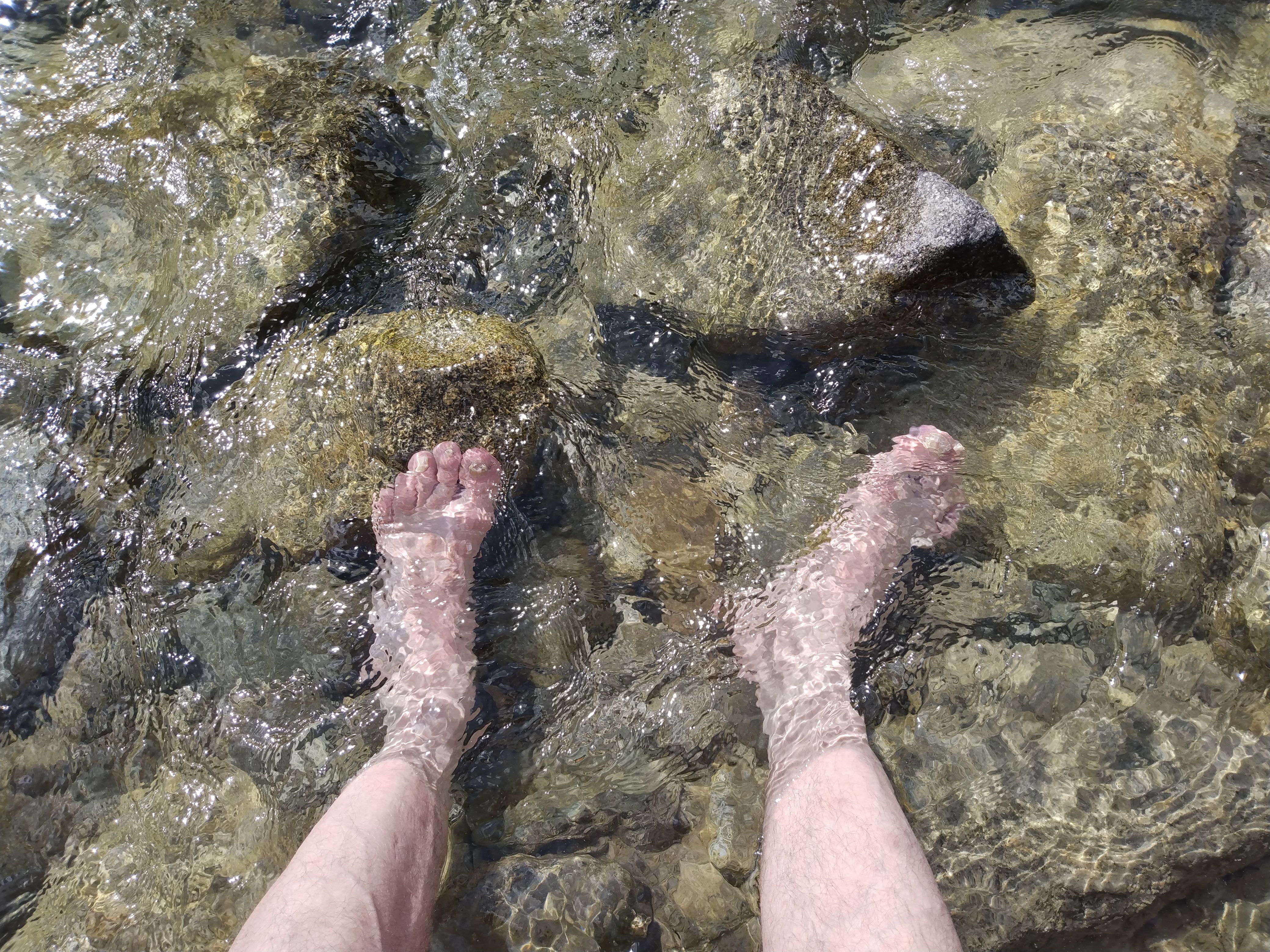 It's hot, and I heat up and sweat a lot. Occasionally a mixture of sunscreen and sweat from my forehead drips into my eyes and makes them burn; I stop to wipe off a few times.