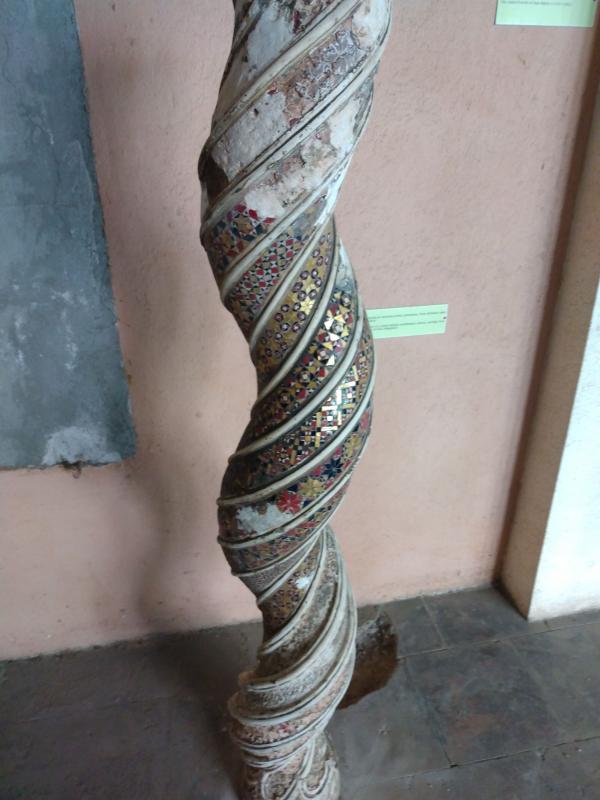 I walk to a small church with some big paintings.