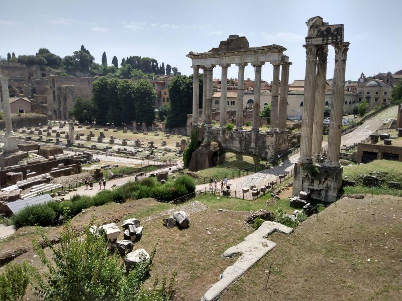 This is encircled by thousands of tourists and even more discarded water bottles. It's also encircled by barriers and fences; you need to buy a ticket to go in. Same with the nearby Roman Forum. Not really my scene.