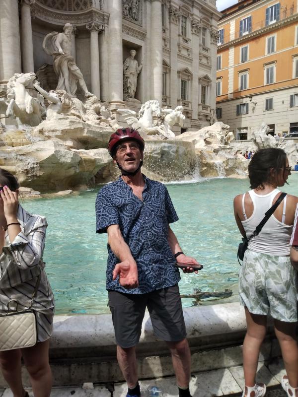 The tour is absolutely effing fantastic. We ride mostly on little back streets and pedestrian lanes. There's a verdant 'art street' where Picasso lived, and a high-fashion street. We go to a dozen or so destinations, some of them well-known (Trevi Fountain, Spanish Steps, Pantheon), others less so. At each of these, we park the bikes and Bita gives us a short history lecture. She's very knowledgeable and passionate about Roman history.