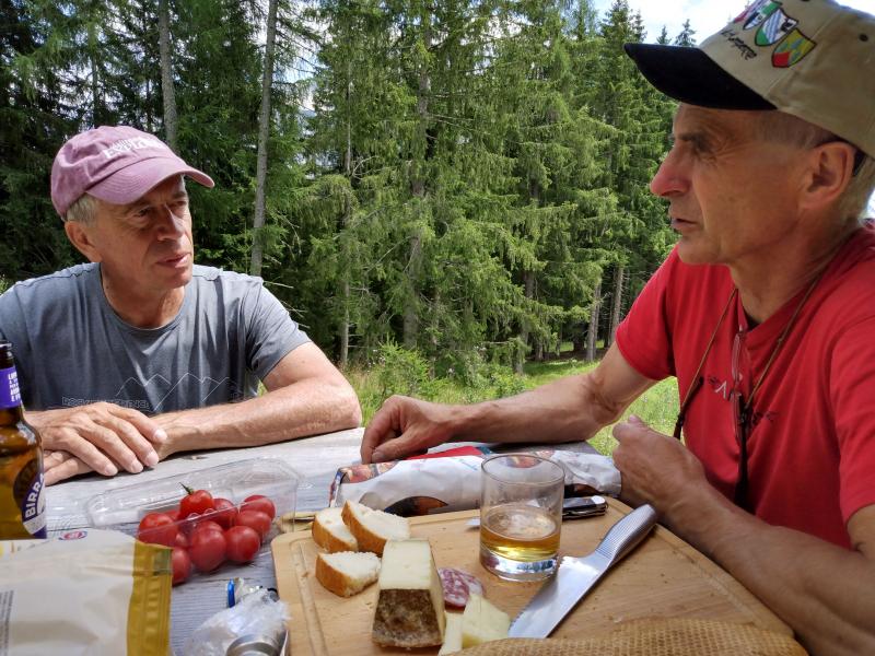 On the way down, we take a detour so that Enrico can collect Edelweiss to put on his father's grave - a yearly ritual. I feel honored to be there. This takes us on faint use trails through lush meadows with lots of flowers.