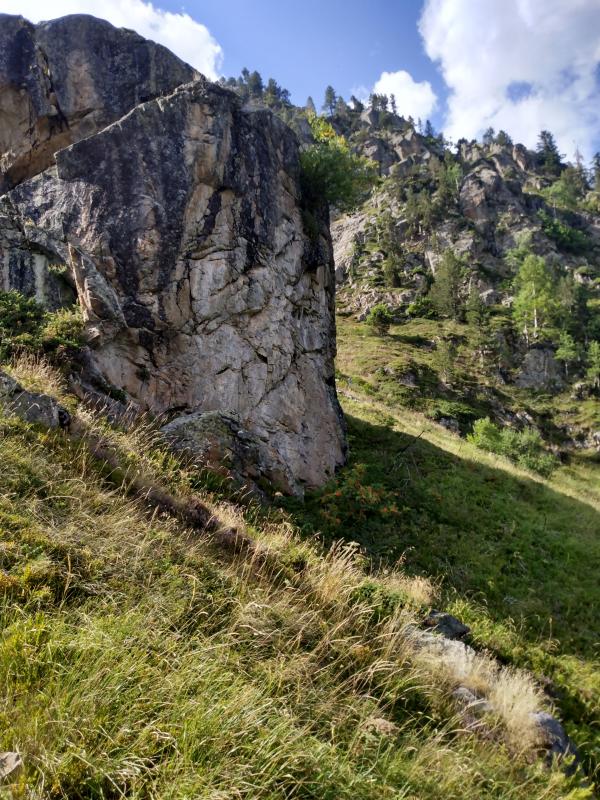 Maryse and I drive up a mountain valley and stop at a lake. There's a trail the goes up the side of the valley, in a long series of switchbacks. I climb up about 1000' while Maryse hangs out at the lake.