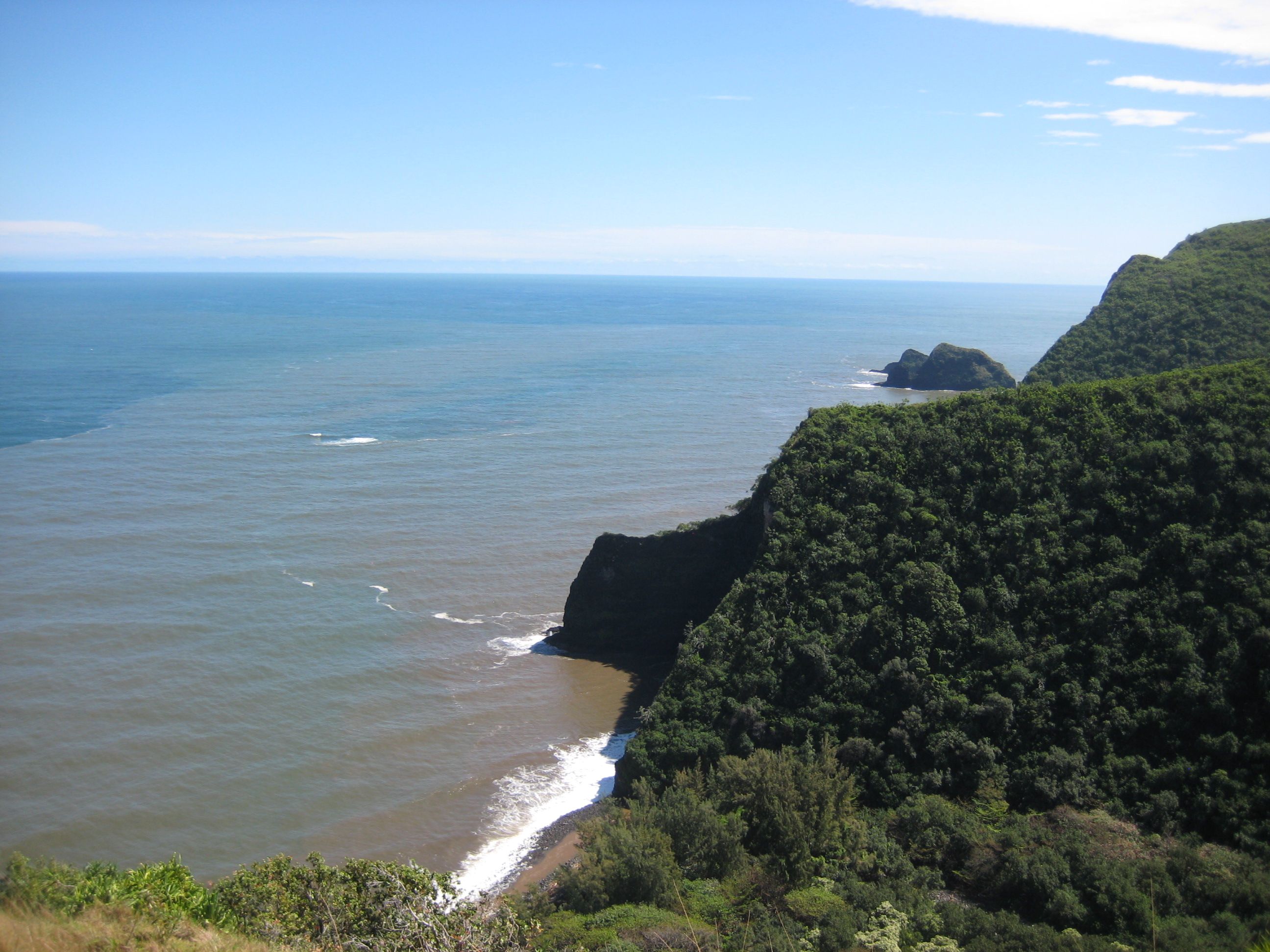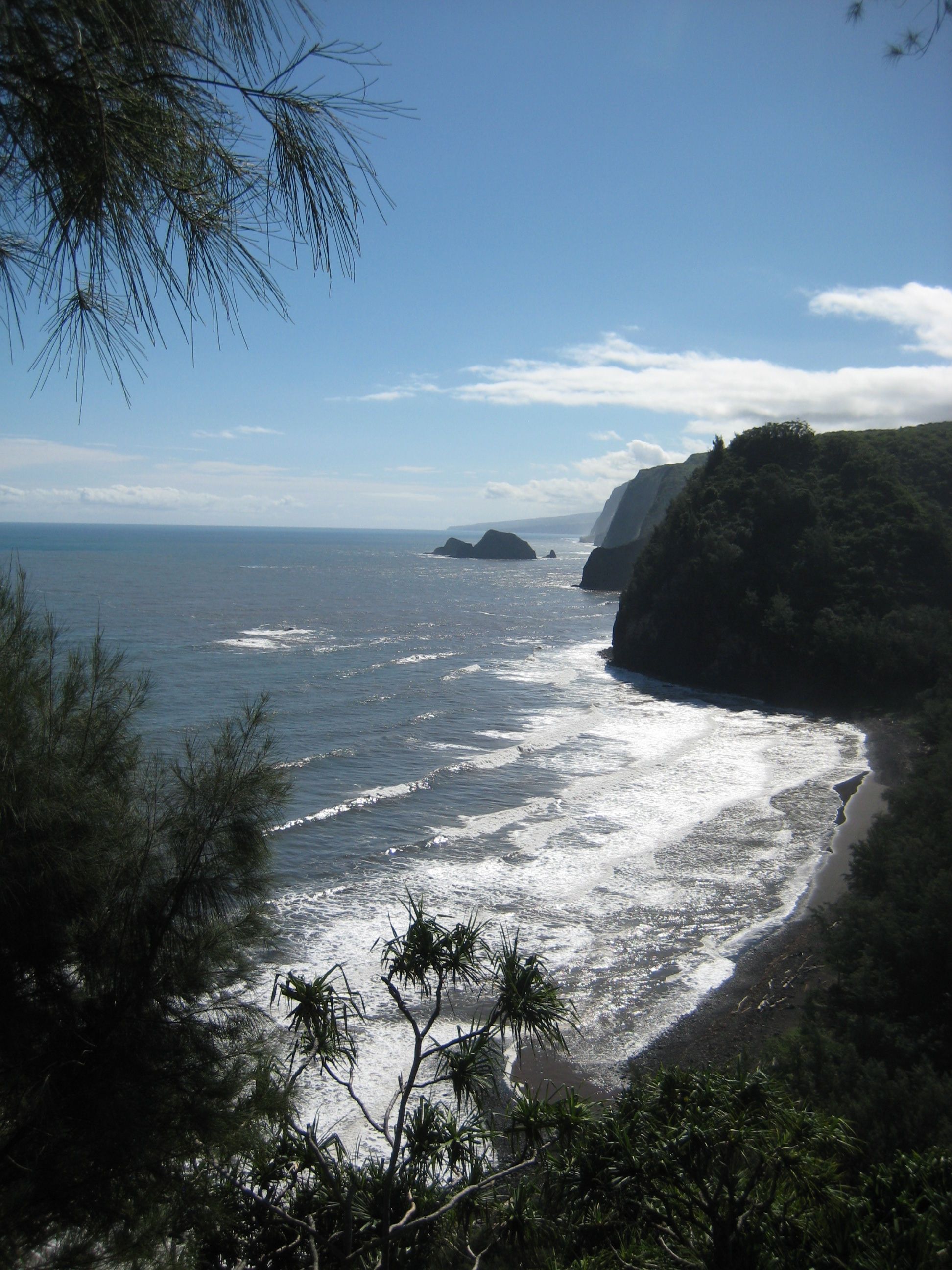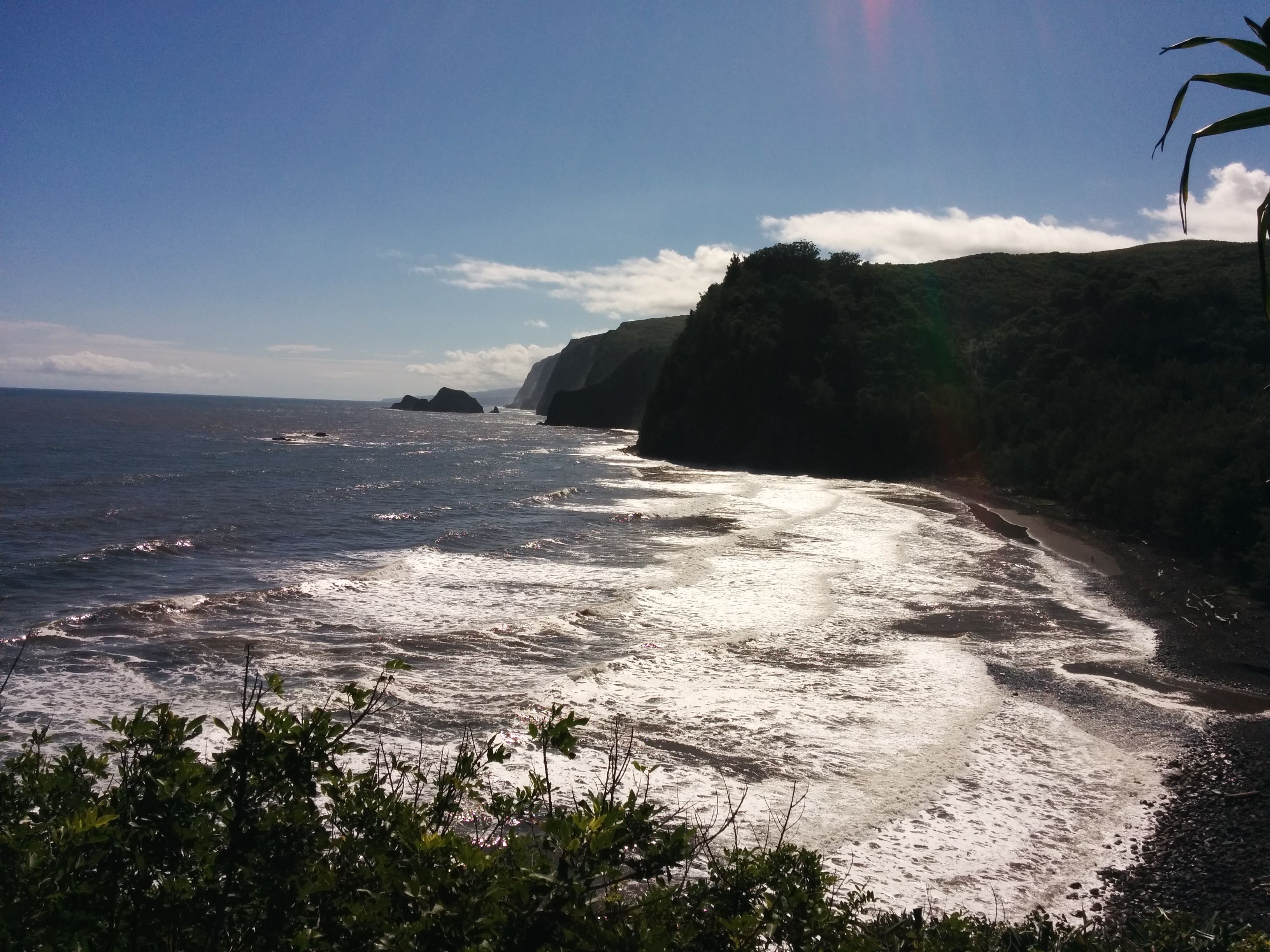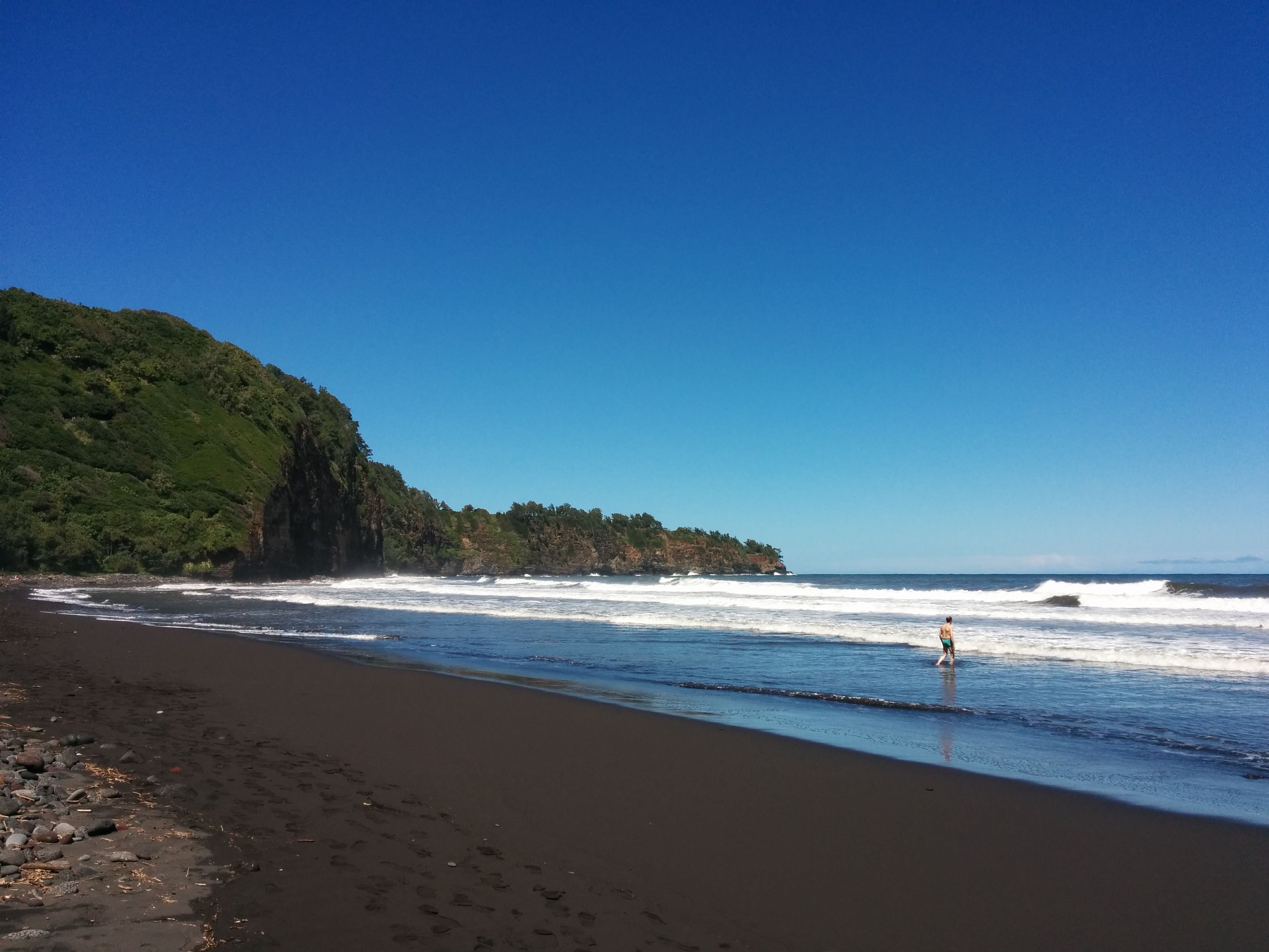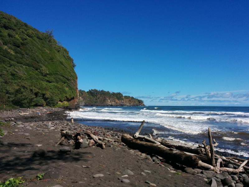 On the advice of our hosts, we drive to the end of the road (270) and hike down to the Pololu beach and valley. It's sunny and hot, but with a sea breeze.