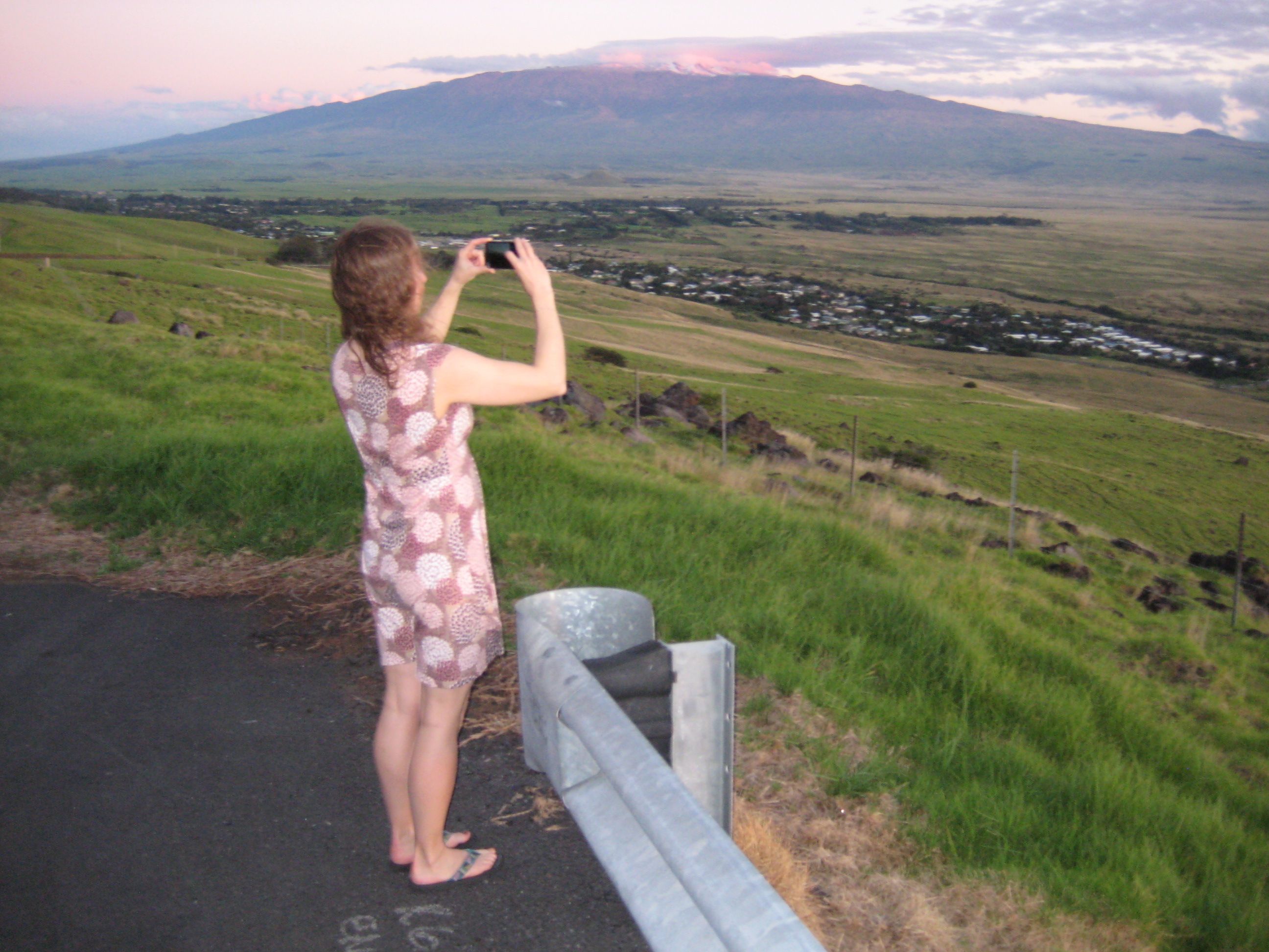 The flight is OK. I arrive 2:30, get the rental car (Hyundai Elantra hatchback), and drive to Kona to wait for Y's flight, which arrives at 6:50. There's a permanent traffic jam on the road from KOA to Kona. I go to a Starbucks for the WiFi, nurse a coffee, and work. A guy nearby talks about a mega-thunderstorm on the way. Sure enough, rain starts - splattering, heavy tropical rain. I sprint to the car. I look unsuccessfully for a grocery store in big-box outskirts of Kona.