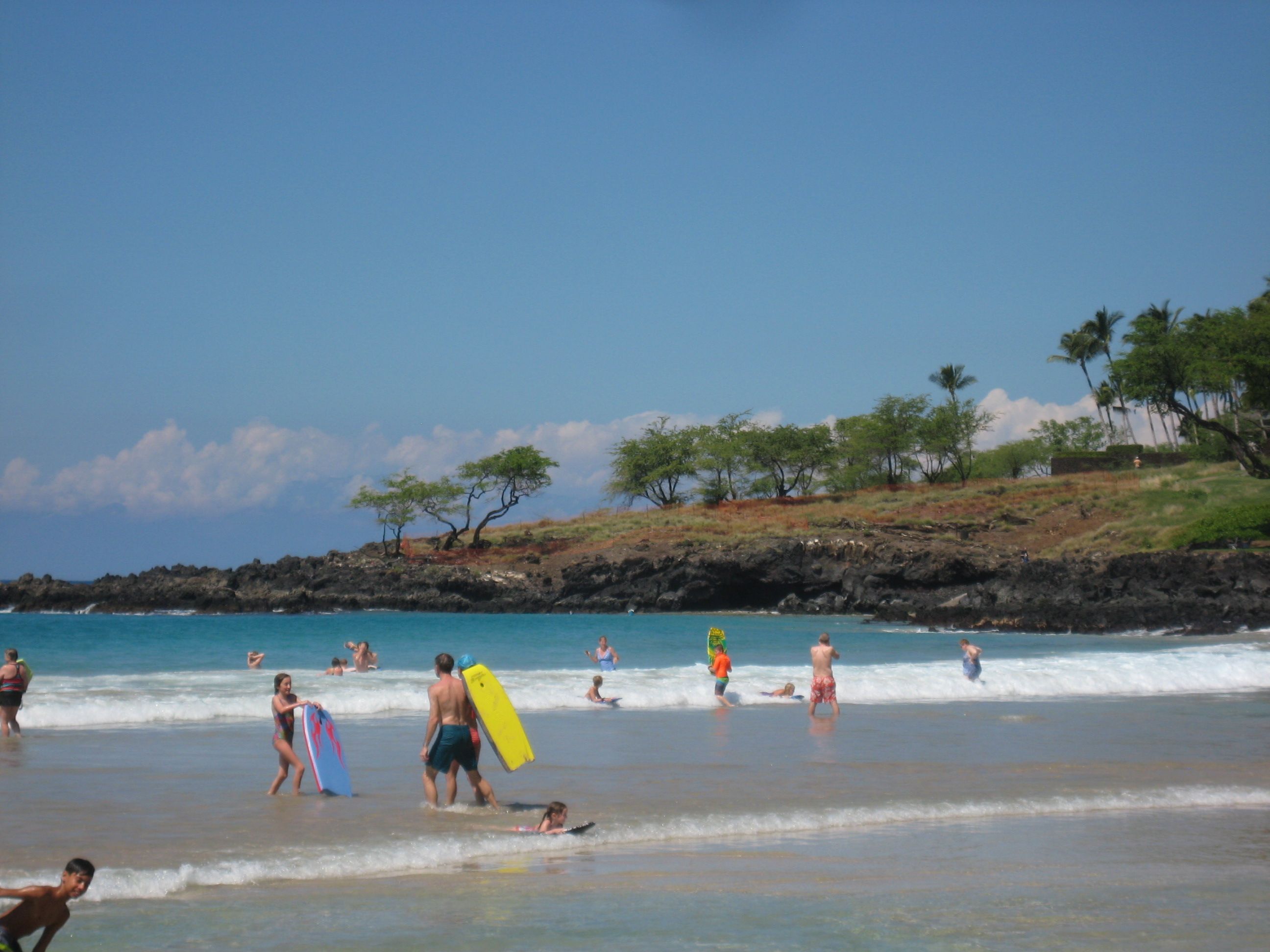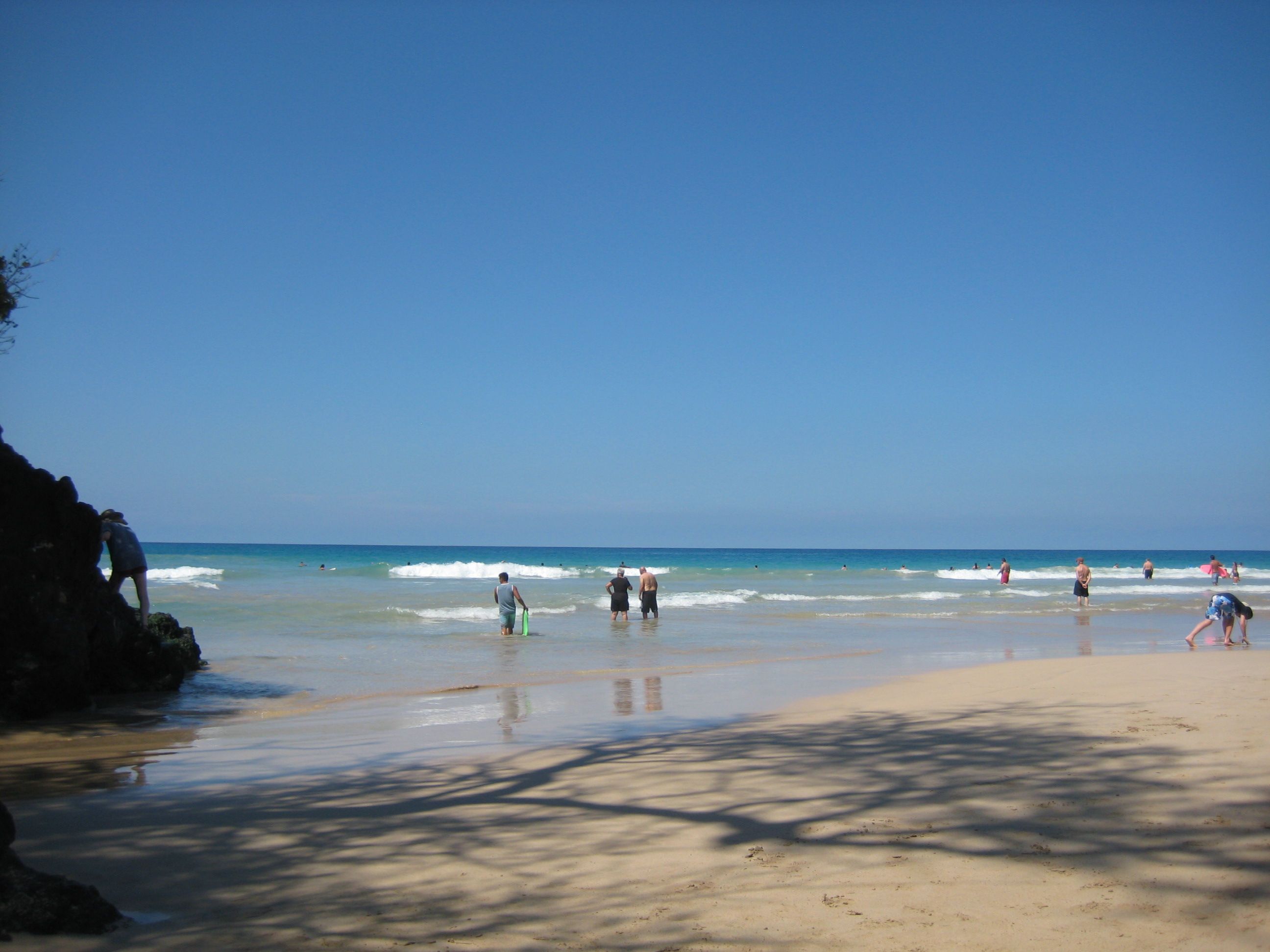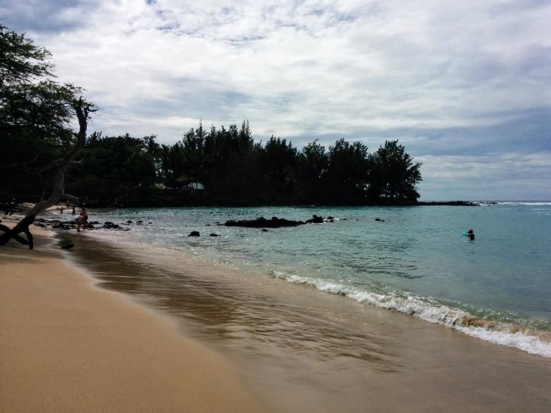We stop at the Waialea beach, just S of Kapuna, and smaller and less crowded. Trees go all the way down to the water.
