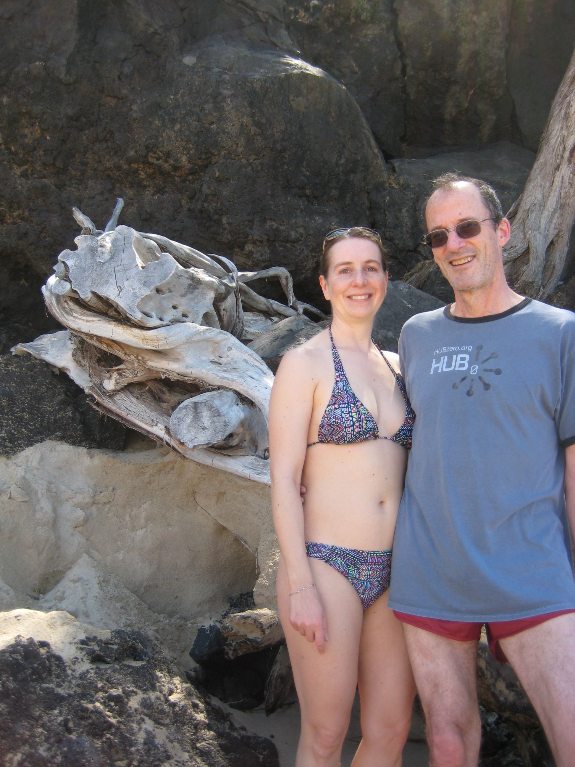 The beach has a number of balanced-rock sculptures. I accidentally destroy one of them.