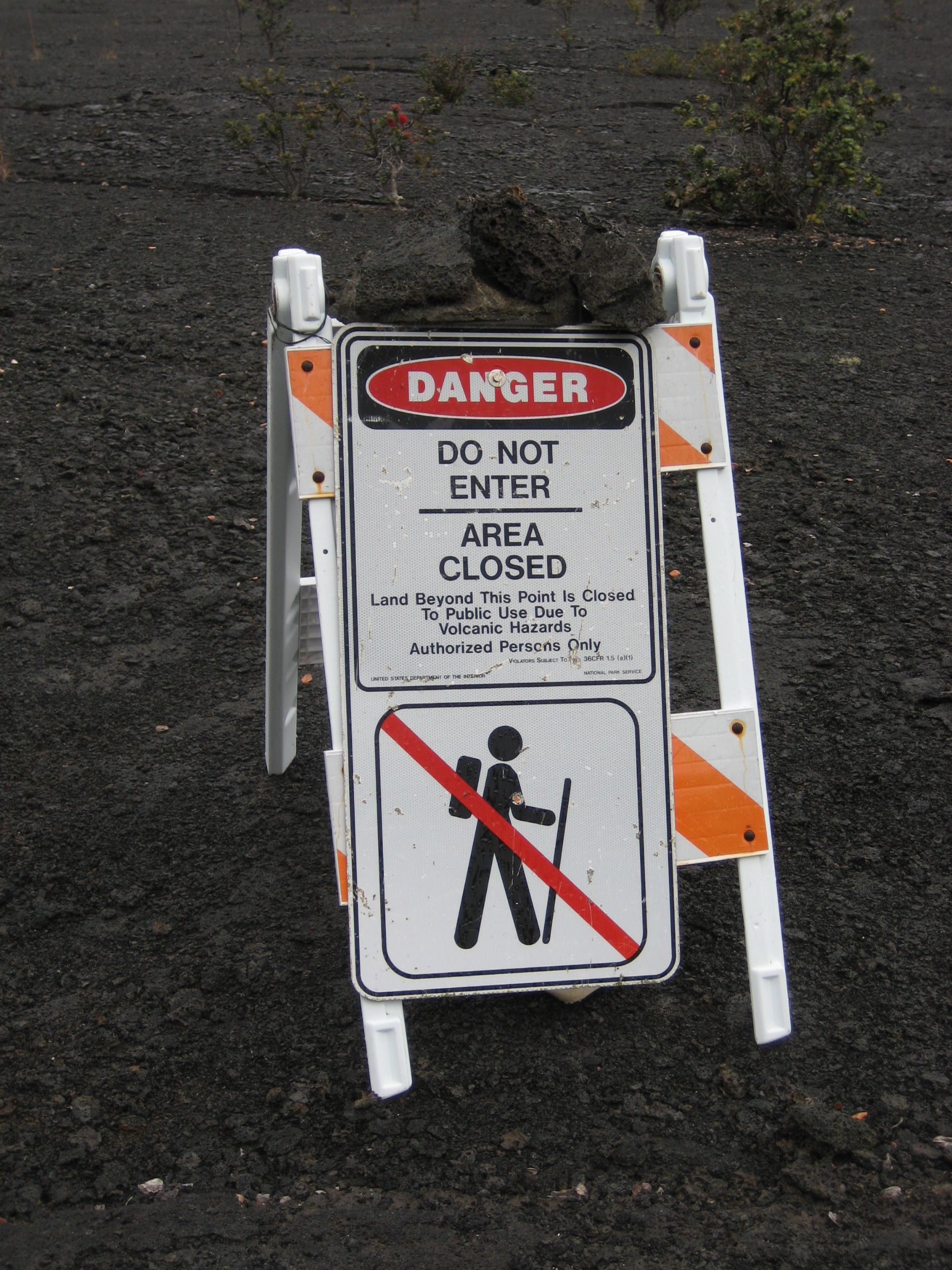 At the far side of the crater we ascend into the forest, and turn off on the "Byron Ledge Trail". This ends up descending into a much larger crater, and large signs mark the edge of a Forbidden Zone with poisonous sulfur fumes.