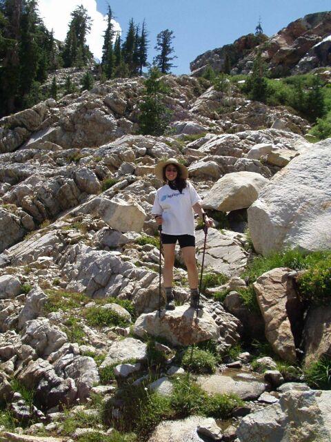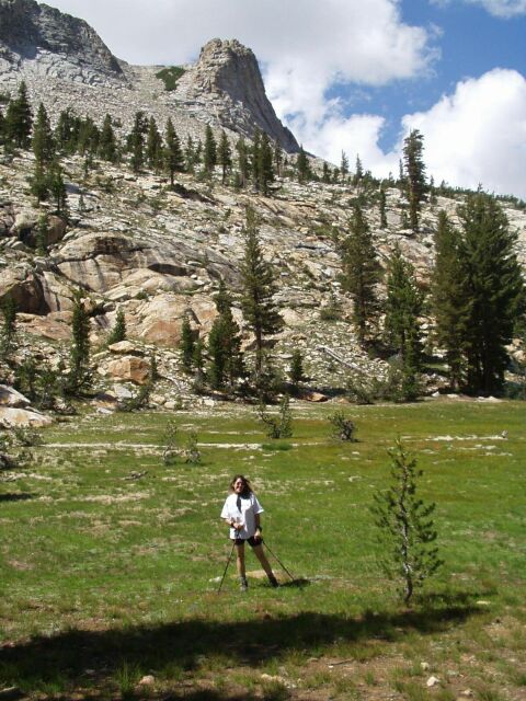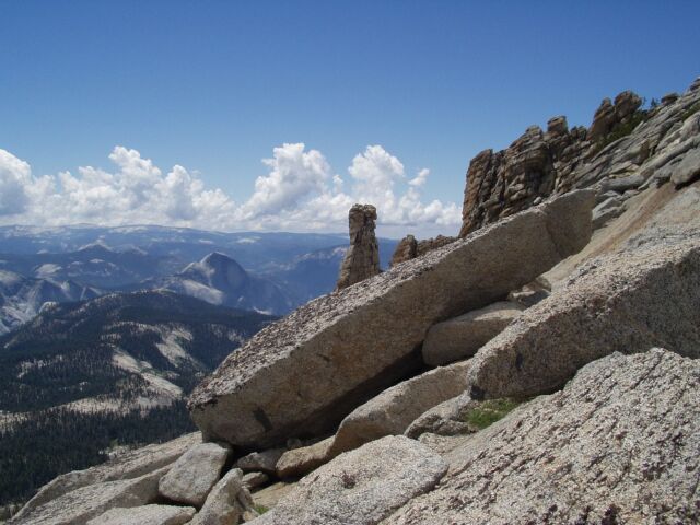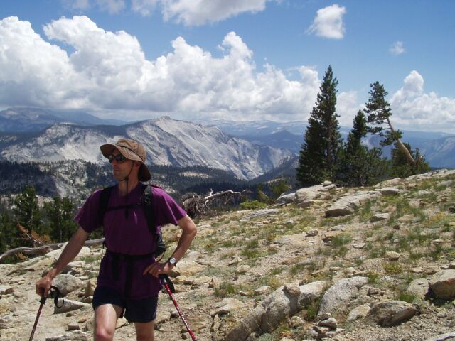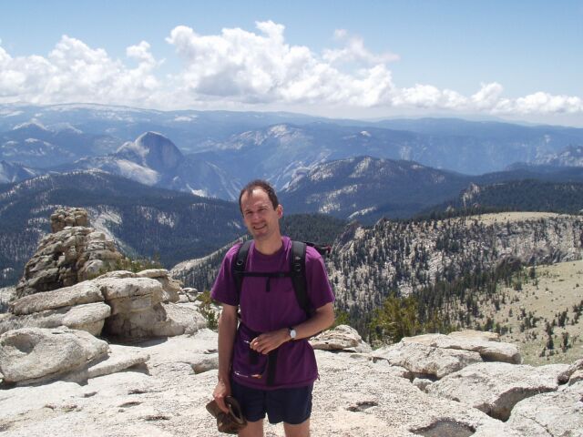 The next day we drove into Tuolumne Meadows and climbed Mt. Hoffman. The weather was perfect and it was one of the greatest hikes of all time. The streams on the right side of the mountain were gurgling merrily, there was some snow at the saddle, the plateau was stunning, a tremendous variety of wildflowers were blooming, the valleys to the left of the mountain were filled with magical-looking white, red and green rocks, and the Ponderosa pines had that wonderful butterscotch smell.