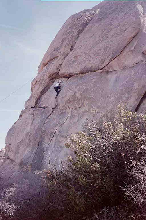 Pat is a 40-ish 'climbing bum' who has spent his youth in Yosemite Valley, Joshua Tree, and other climbing Meccas. A very interesting and amiable guy. He's currently studying for a Masters in Philosophy at San Diego State. We discusses Hegel while Lynne was climbing, and Lynne and I vainly tried to recall the words to the Monty Python Philosopher's Drinking Song.