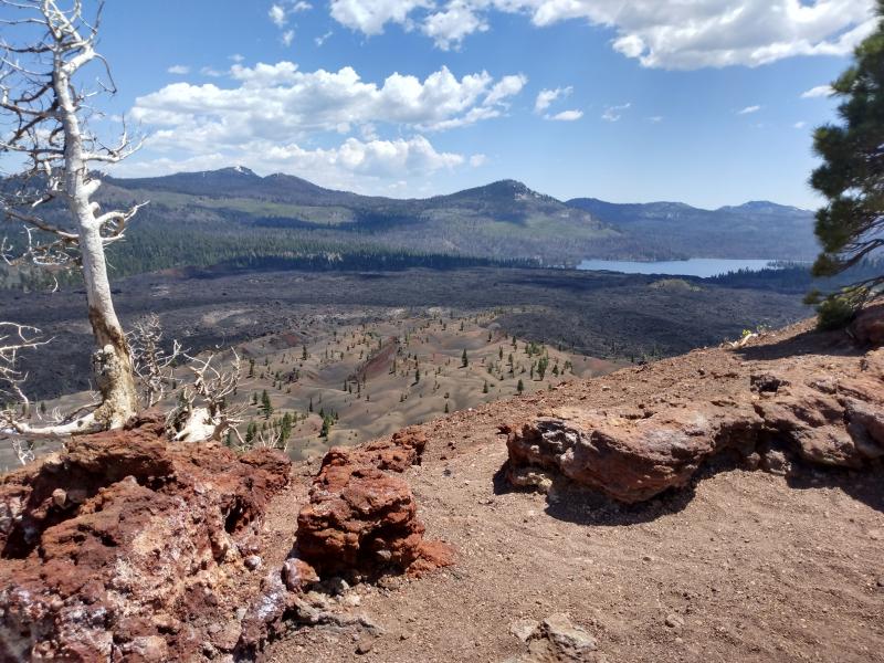 I program 'Cinder Cone' into Google Maps on my phone, but once we're out of cell range it forgets everything. (Note to self: use the car's nav instead). Looking for a sign for Cinder Cone, we drive past a sign for Butte Lake campground. About 10 miles later we stop at a rest area. I talk with a bicyclist, and learn that the Butte Lake road in fact goes to the Cinder Cone. Terrible signage.