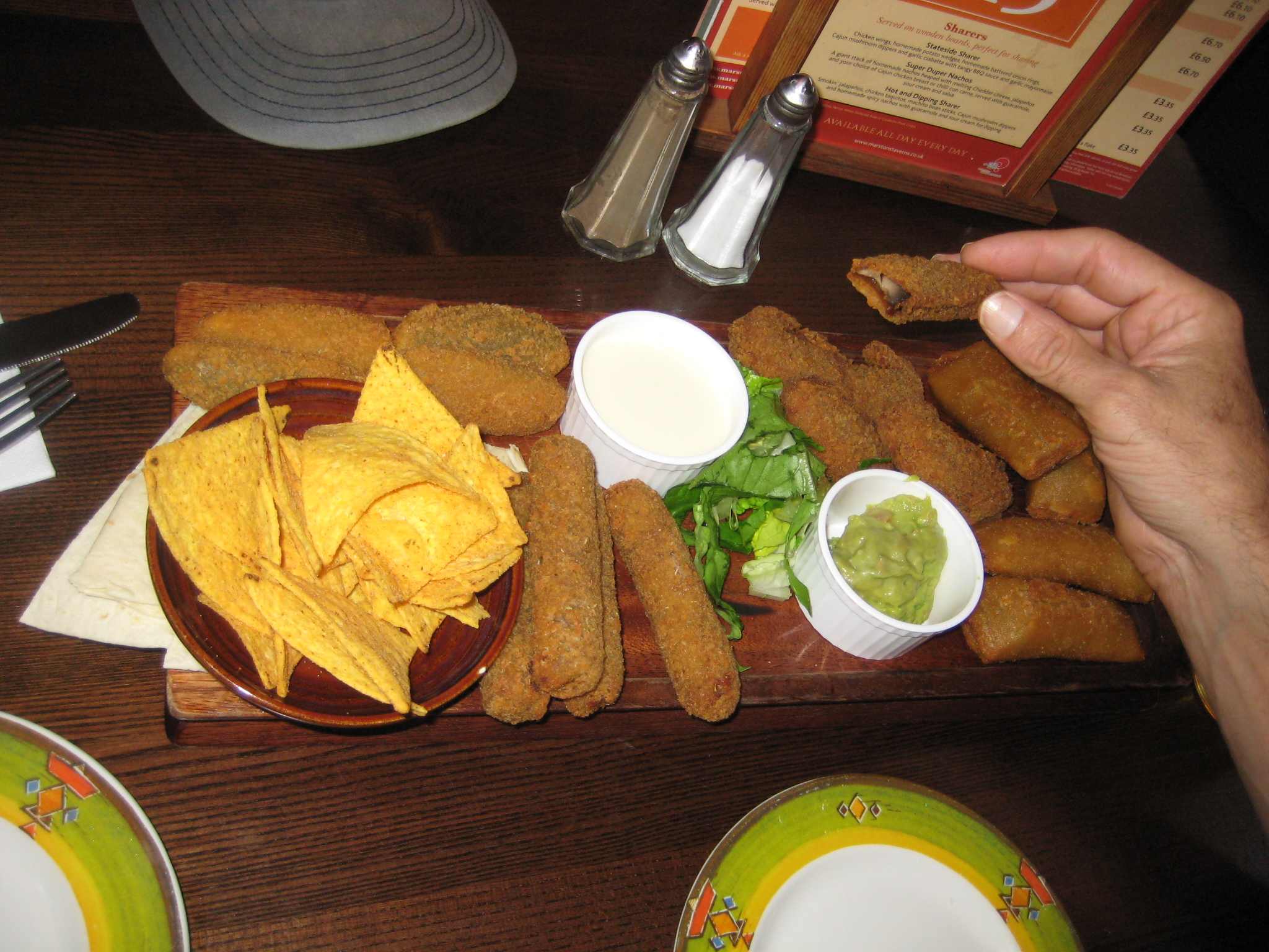 For dinner we split a deep-fried appetizer platter at a pub.