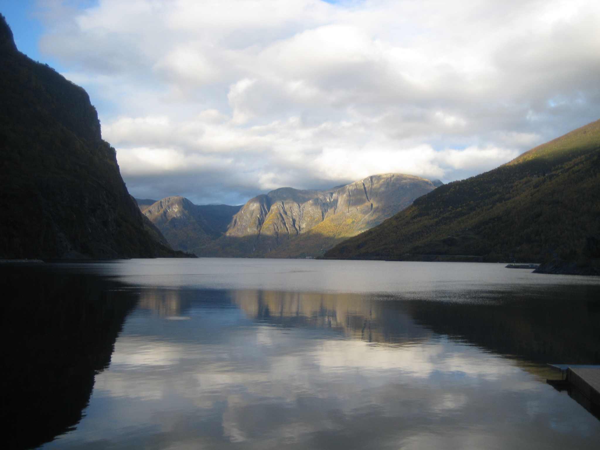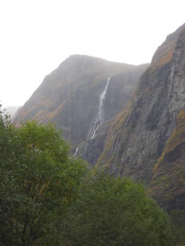 The scenery is very dramatic. Many waterfalls run down the immense fjord cliffs.
