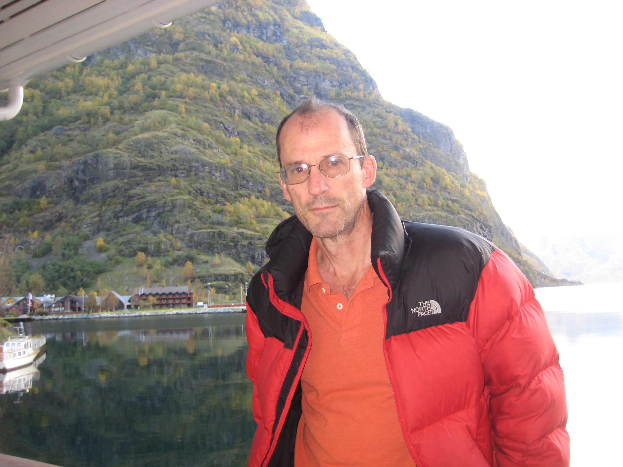 We arrive at Flam, a tiny place with a railroad station and a few small hotels. Our hotel is on the shore of the Fjord, and its balcony offers a spectacular view of the Fjord and the immense cliffs on each side.
