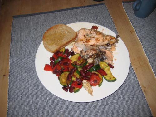 We return to the car and drive to Oslo. E18 is inexplicably closed at some point so we detour on the smaller 9. We stay at a large hostel in the outskirts of town. It has a shared kitchen. I make salmon with a huge amount of crispy garlic and mashed potatoes and steamed baby carrots.